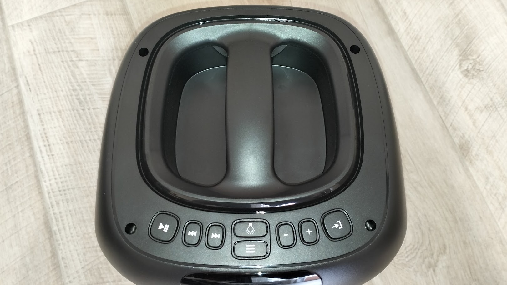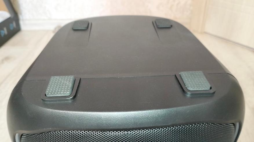 Сверху находится массивная ручка для переноски колонки, а также блок управления: