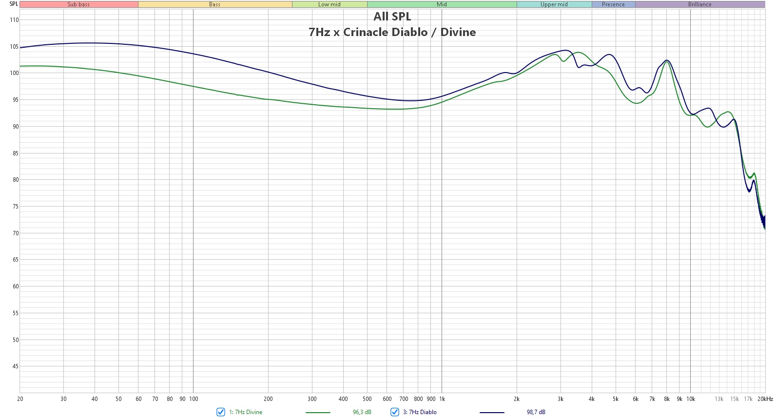 Отдавая должное 7Hz и Crinacle, в Divine просто шикарно раскрывается вокал, особенно женский, и соответствующие ему акустические инструменты. Басовая партия, как ни крути, слышна, но тут она больше для ощущения присутствия, то есть без акцента и какого-то заполнения. В то время как Diablo отводят равную долю для каждого элемента на аудиальном полотне. Музыка буквально струится, есть та самая певучесть, эстетика и вовлечение в материал.