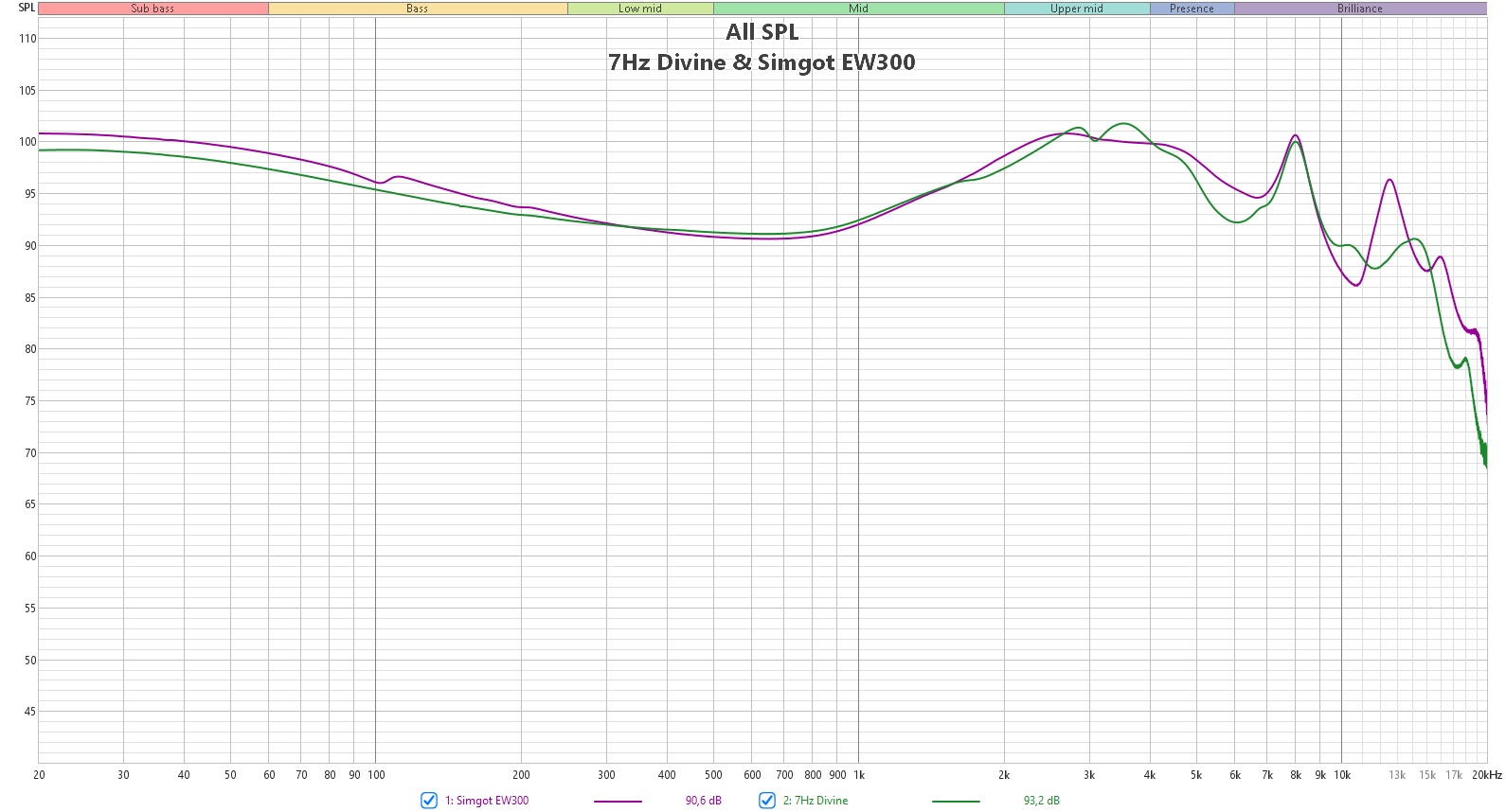 Ну и в сравнении с Simgot EW300 разница чисто номинальная, то есть это вариации на ту самую хармоновскую кривую.