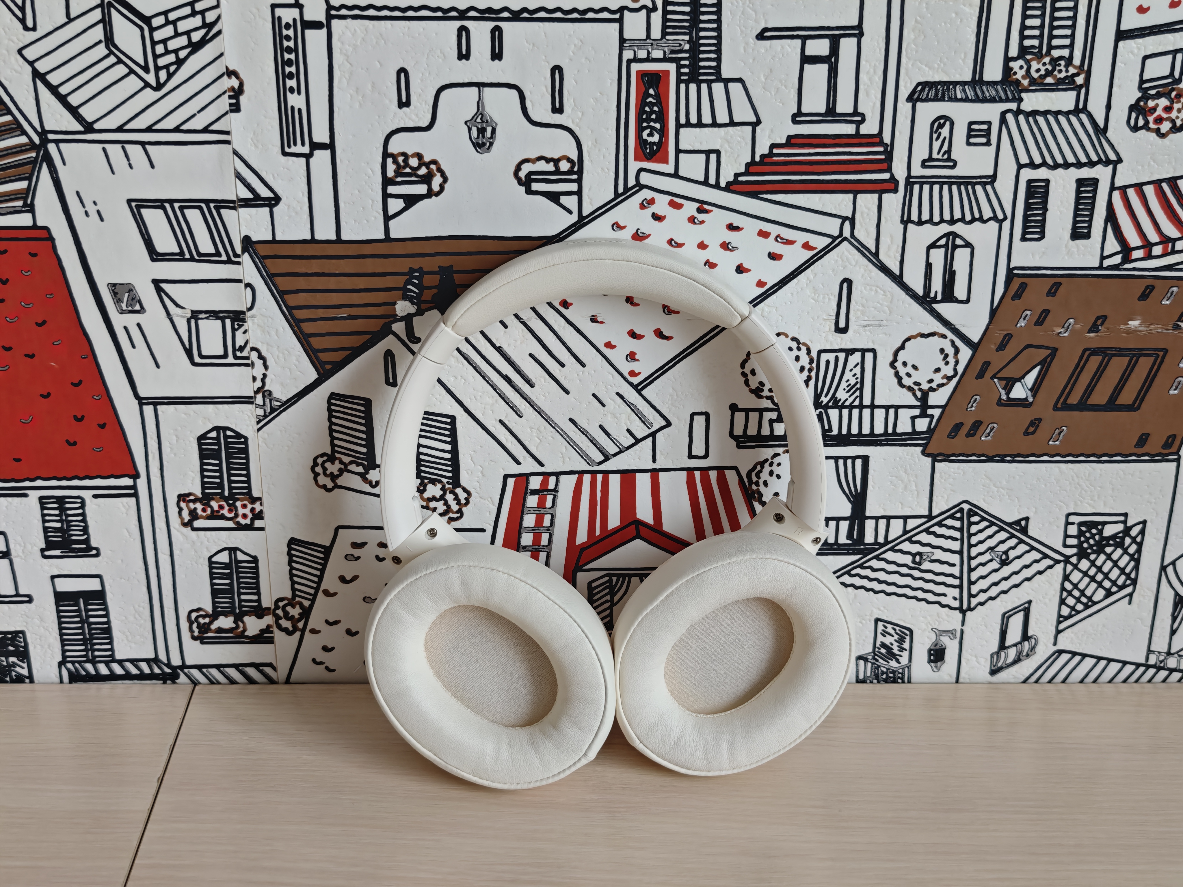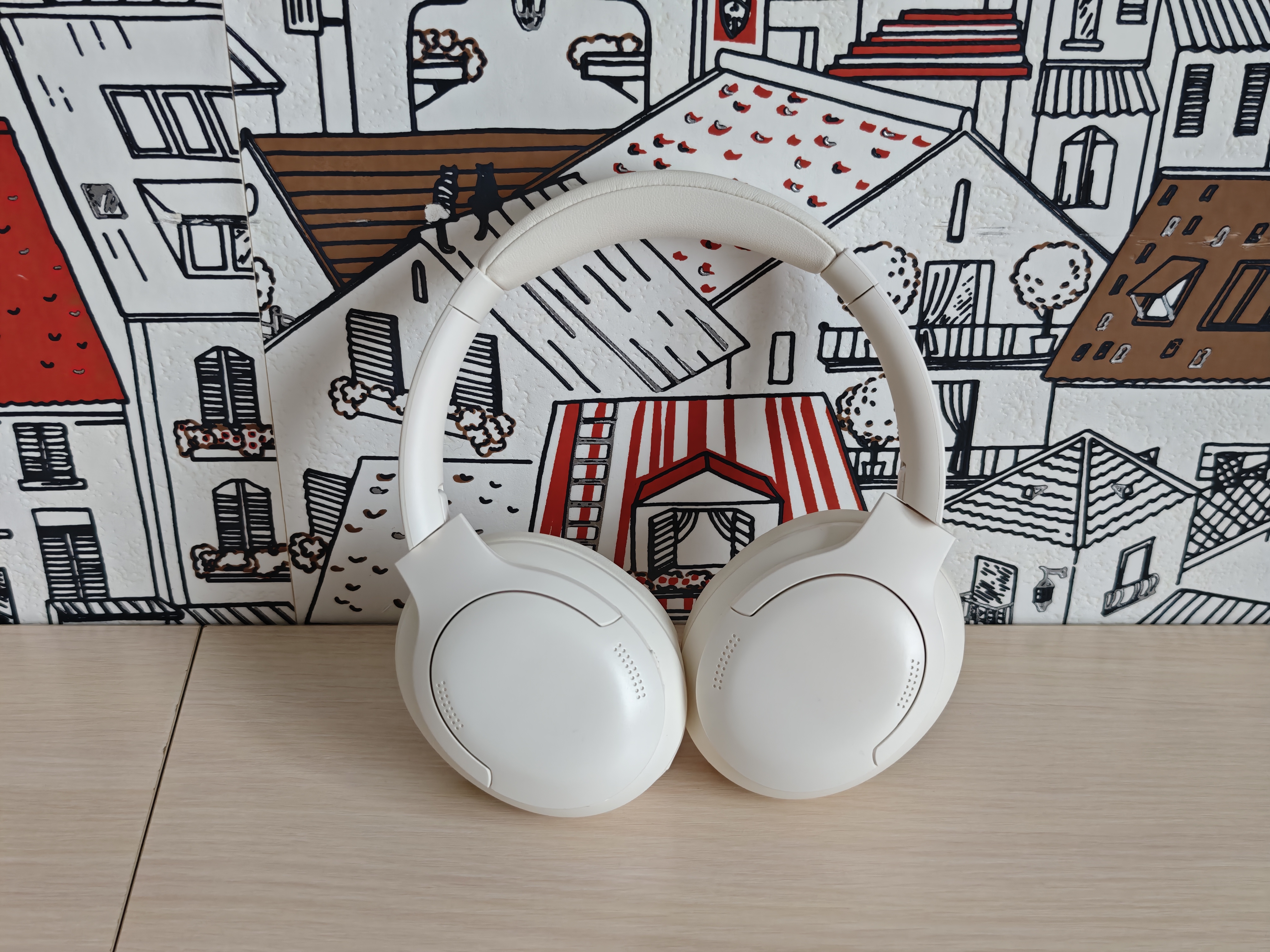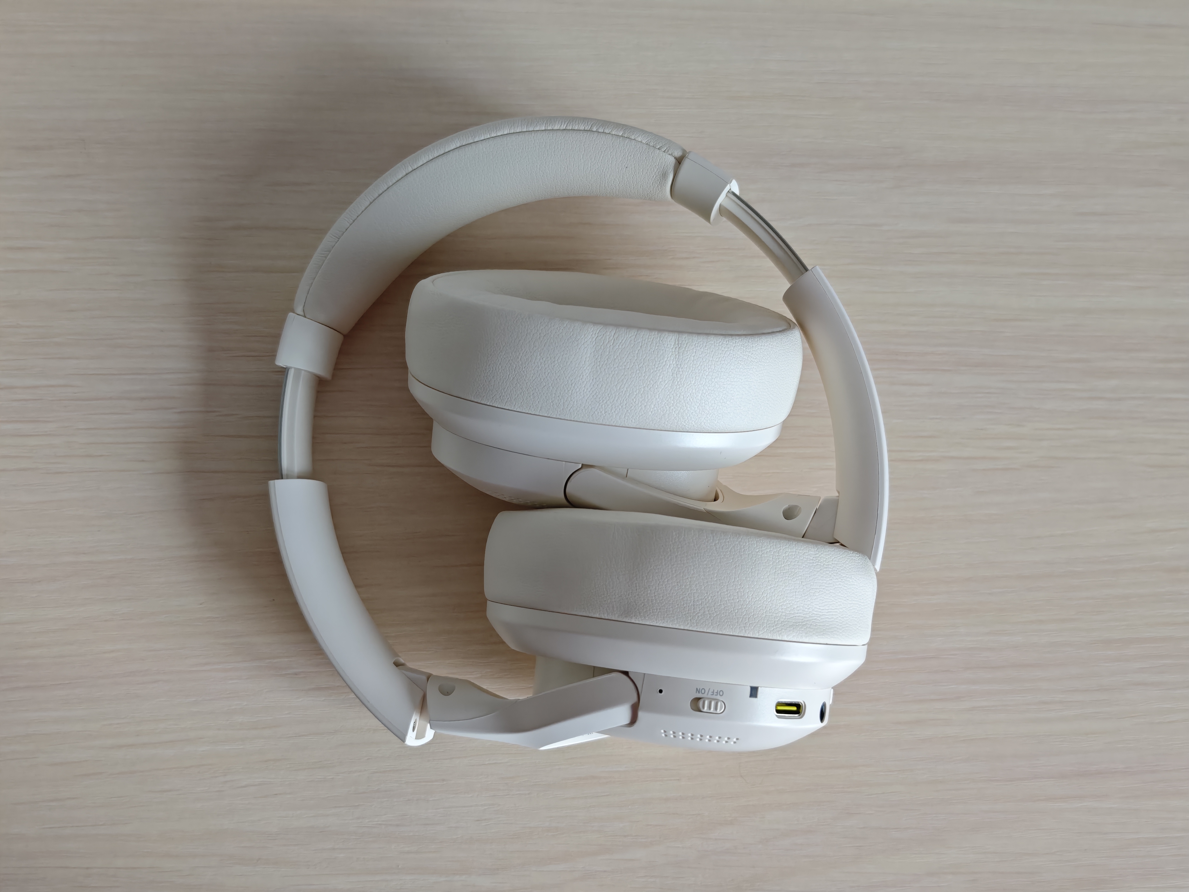 Полноразмерные наушники выполнены из белого пластика с мягкими вставками в оголовье. Крупные амбушюры из экокожи не перегревают уши при длительном использовании.