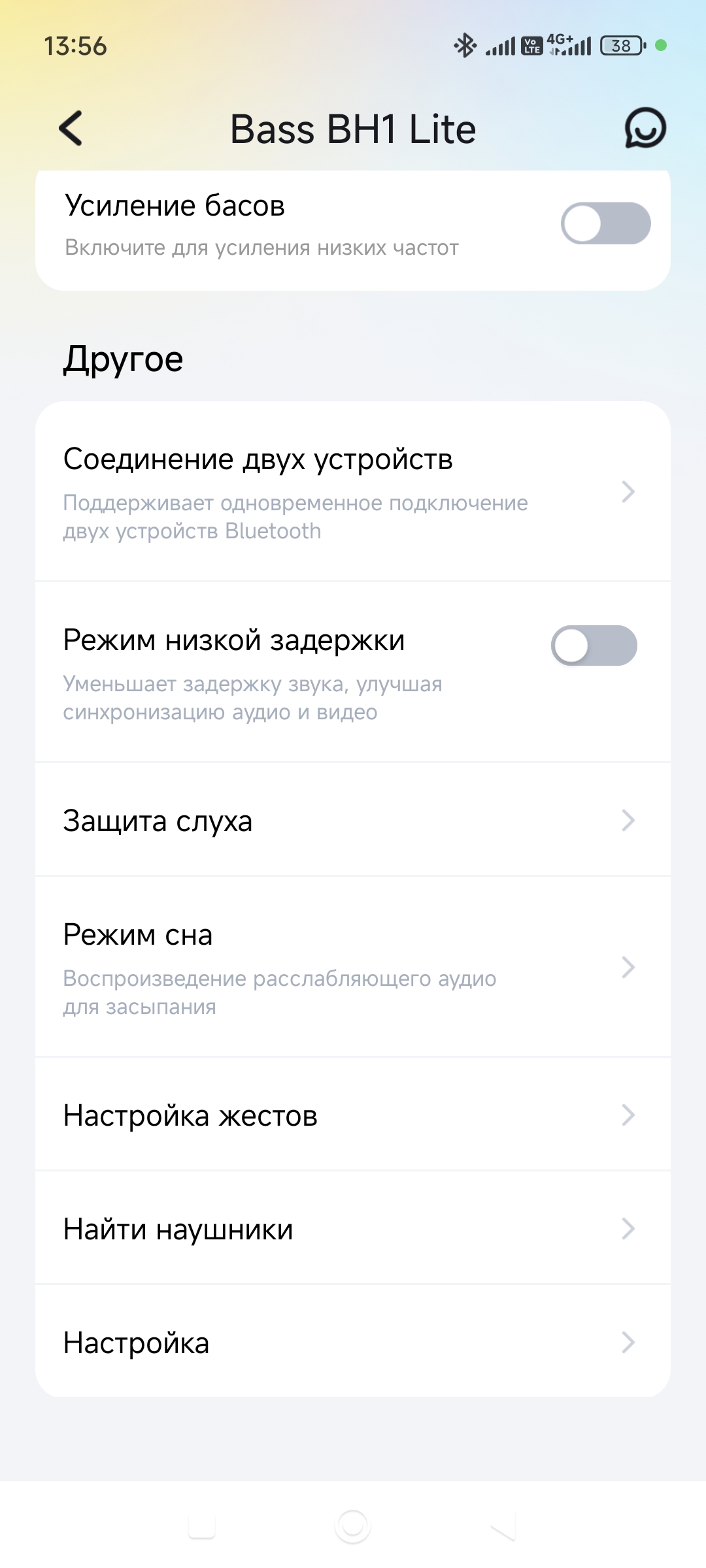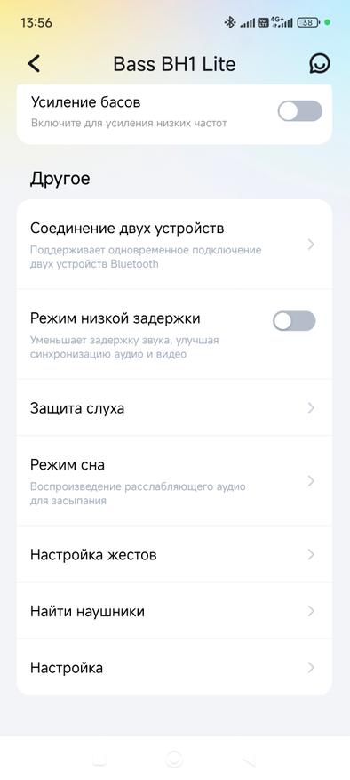 Приложение для наушников помогает настроить их под потребности владельца. В нем возможно выставить параметры эквалайзера, прошивки, шумоподавления. Интерфейс классический, понять его можно без инструкций. Настройки распределены по группам. Несмотря на минимальное количество функций, приложение немного расширяет возможности устройства.