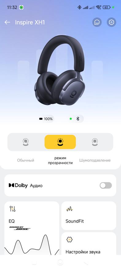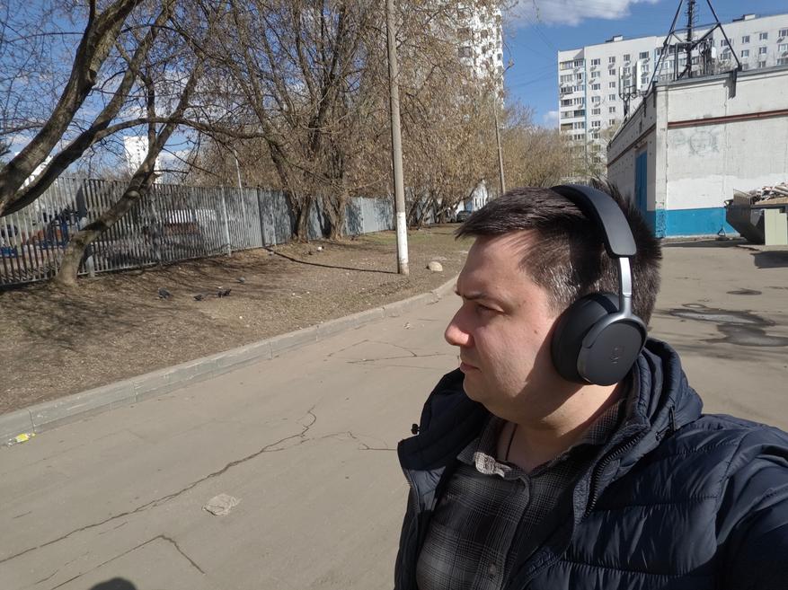 Как я уже говорил выше через приложение можно переключать режимы шумоподавления или включить режим прозрачности — внешние звуки выводятся в наушники через микрофоны. Качество режима прозрачности естественное, без усиленных высоких частот.