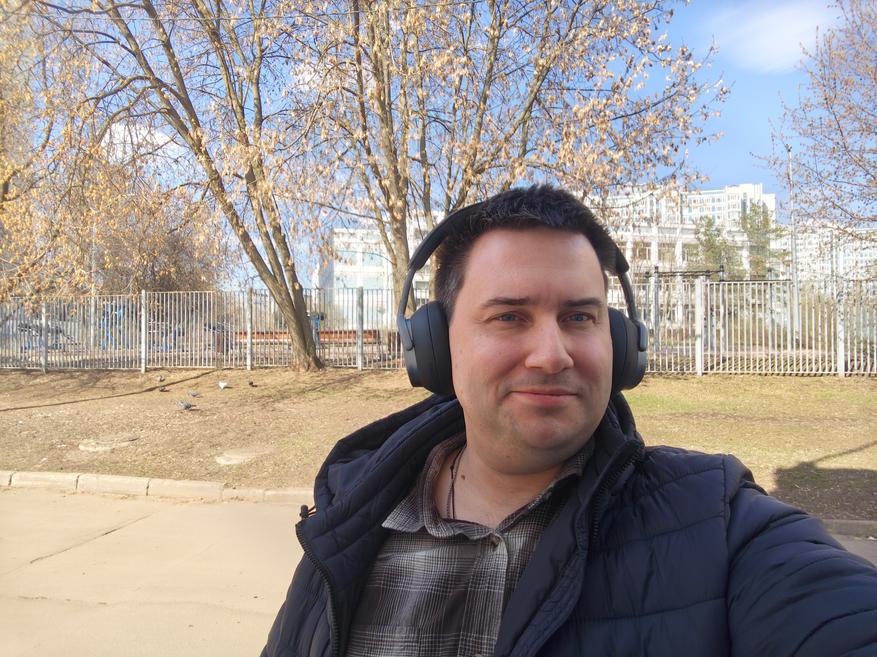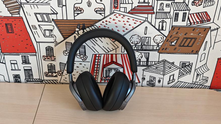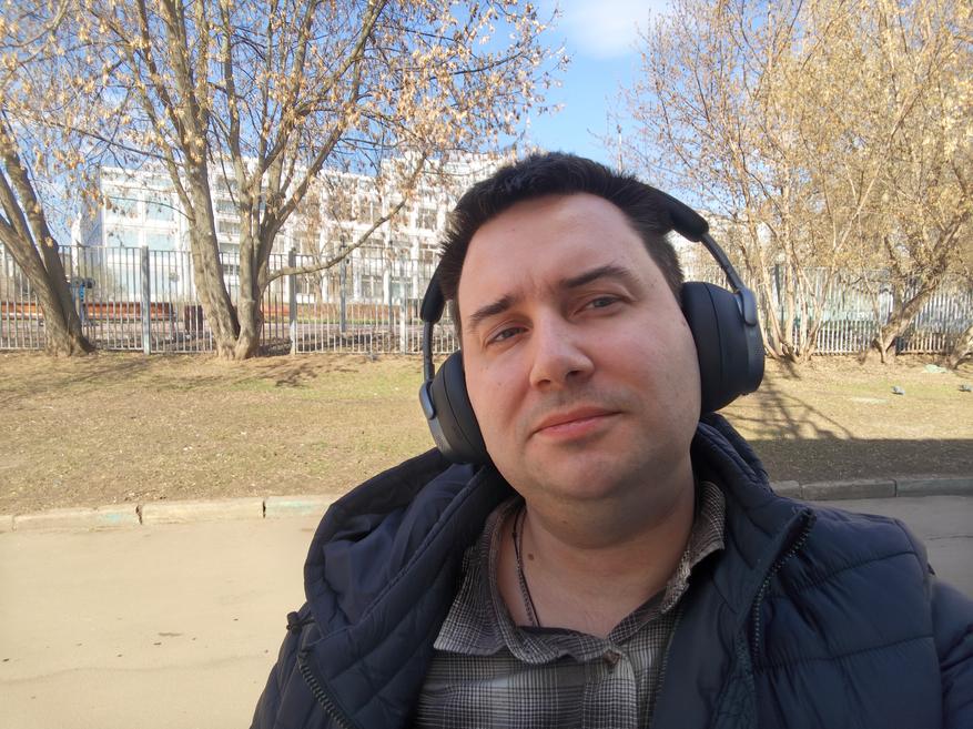 Поговорим поподробнее про шумоподавление. Гибридная система ANC анализирует окружающую обстановку 38 400 раз в секунду. Заявленная глубина — до -48 дБ. На практике наушники хорошо справляются с монотонным шумом: гул в самолёте, шум поезда, работающий кондиционер — всё это уходит практически полностью. Голоса вокруг приглушаются, но не исчезают полностью, что характерно для всех наушников без специализированной обработки речи.