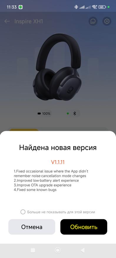 Наушники работают на Bluetooth 6.1. Сопряжение с моим смартфоном было быстрым, соединение не терялось при хождении по квартире и офису. Поддерживается мультипойнт — можно подключить два устройства одновременно и переключаться между ними без перезагрузки. Задержка в видео и играх — 80 мс, что для повседневного использования незаметно. Аудиокодеки: SBC, AAC, LDAC. LDAC активируется в приложении Baseus. При передаче по LDAC наушники выдают до 990 кбит/с, что в 3 раза больше, чем SBC на 328 кбит/с. На практике это заметно в детализации высоких частот и глубине сцены.