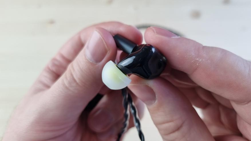 Похожие на KB-07 насадки тоже имеют свою особенность, немного смазывая фокус и как бы погружая вокал в глубину трека. В итоге я использовал классические амбушюры KB-07 с кабелем от компании Kinera. Конечно, абсолютной синергии и в этом случае не происходит, но так становится гораздо лучше и их даже сравнить с чем-то заметно подороже. В качестве альтернативы могу посоветовать любой другой чисто медный кабель с нормальным сечением.