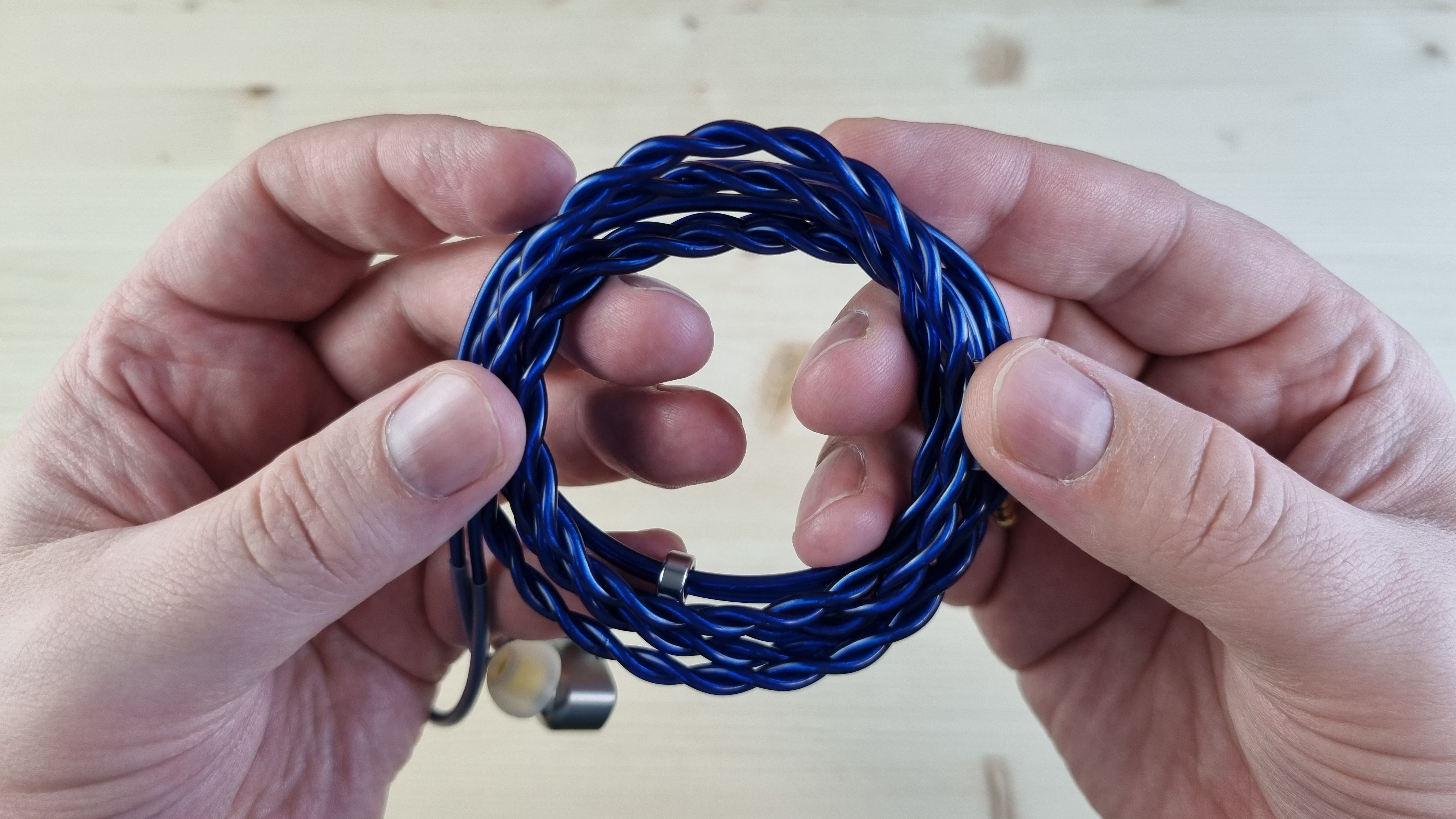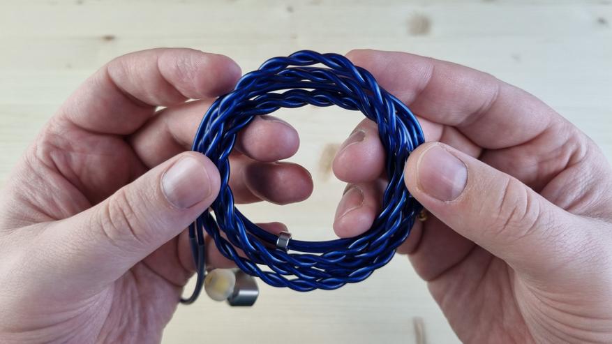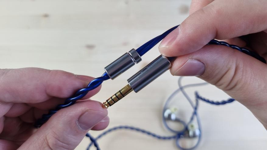Кабель смотрится солидно, он витой, из плотного силикона, со штекером сразу на 4.4 мм джек и сопротивлением на каждой из жил по 0.3 Ома. Шикарное решение, большего от него и не требуется.