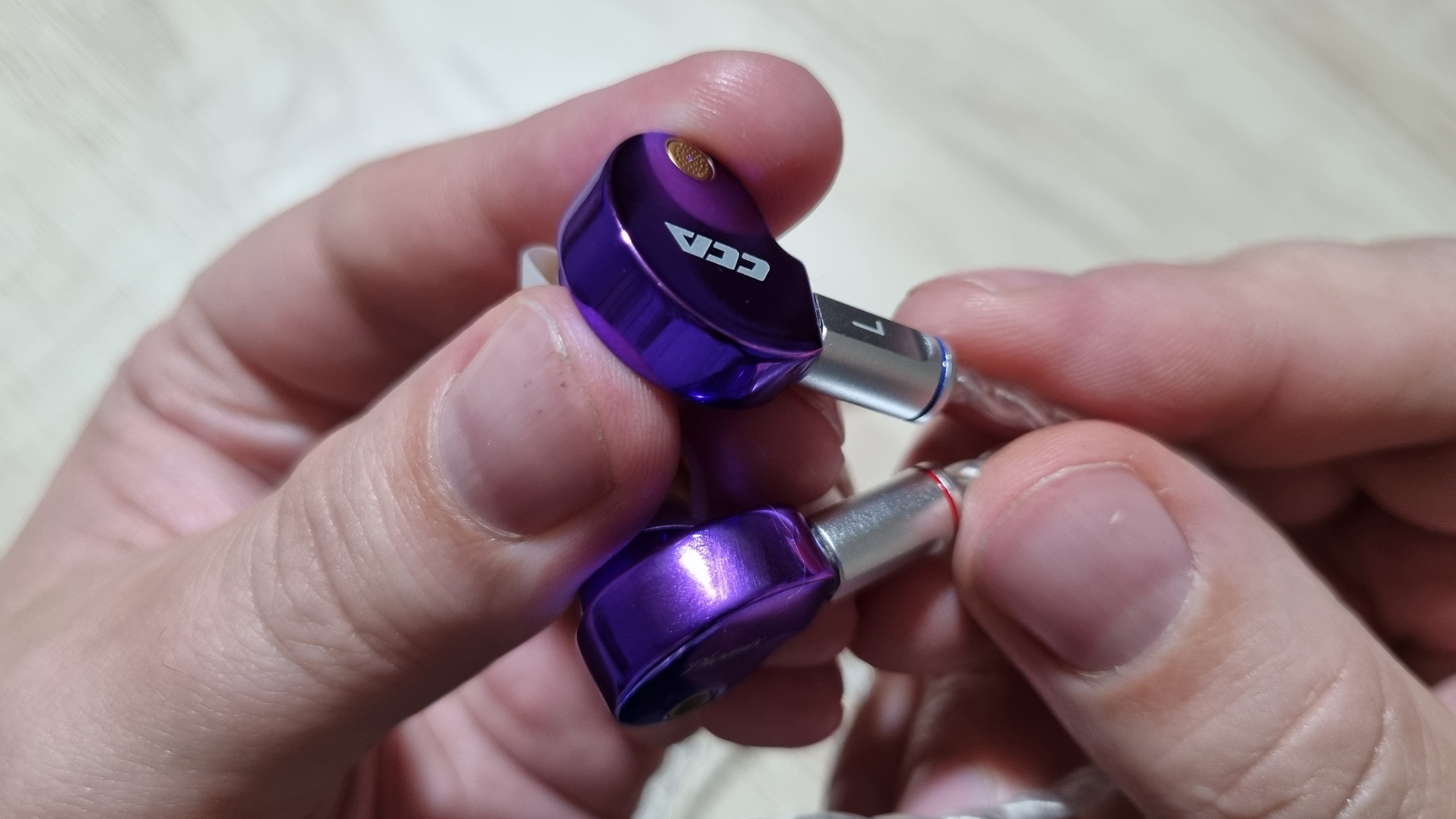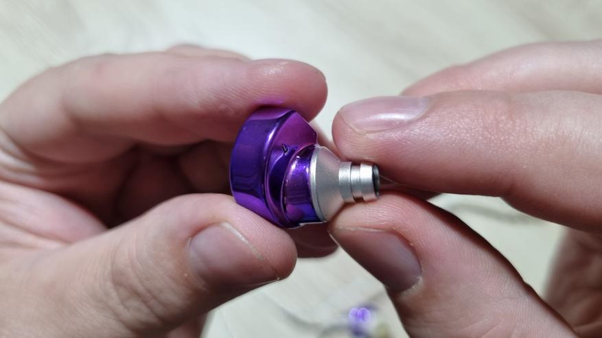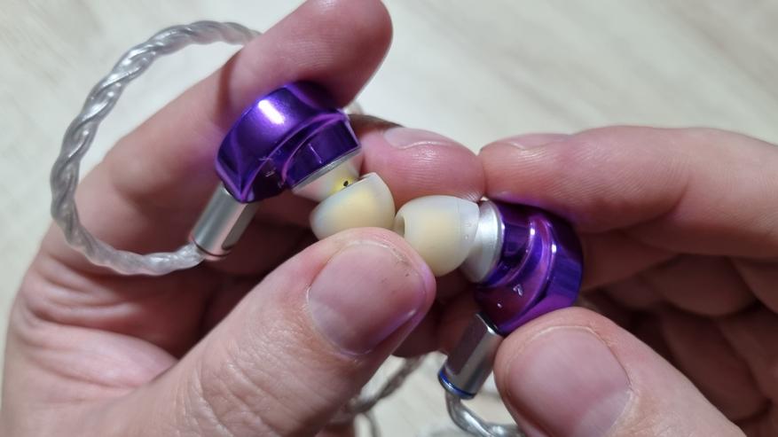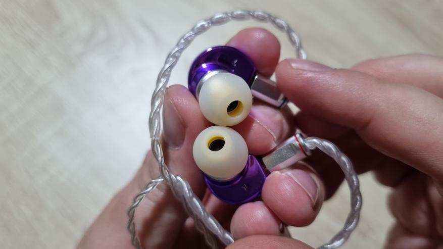 Чашечки полностью сделаны из металла, с системой из трех отверстий, включая большое с внешней стороны, отдельно вынесенным звуководом и, о чудо, классическими вилочными коннекторами по 0.78 мм. Раньше были далеко не универсальный QDC ещё и на нестандартных 0.75 мм.