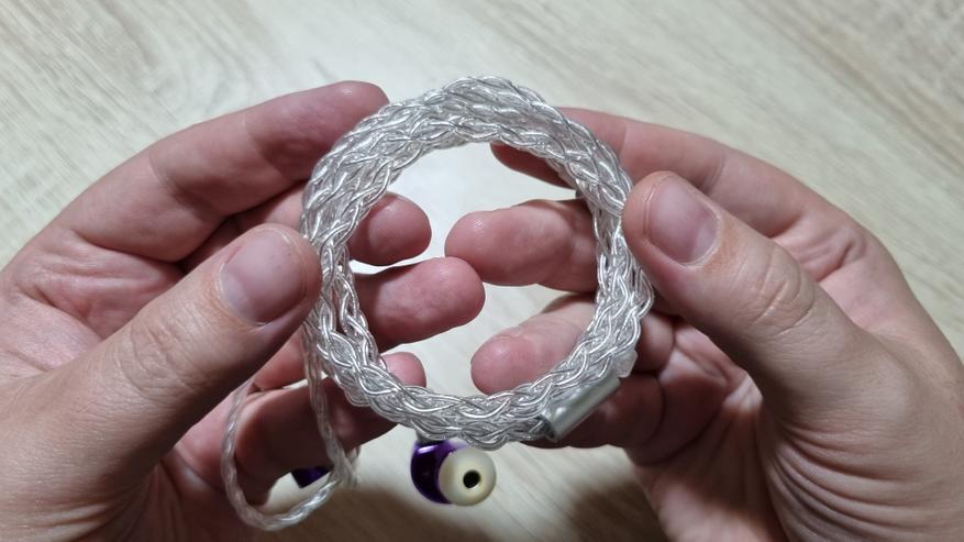 Кабель толстенький, плотный, витой, с 3.5 мм или Type C разъемом на ваш выбор. В последнем случае, естественно, в кабель встроен простейший ЦАП. То есть и здесь изменения исключительно в положительную сторону. Надеюсь, можно забыть их старые кабели, как страшный сон. Менять новый нет никакой необходимости.