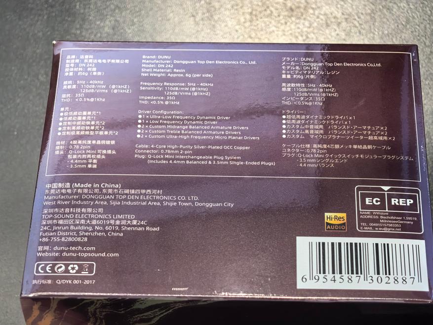 На лицевой стороне упаковки запечатлён мифологический персонаж Нэчжа в своём сражении. На оборотной стороне даны технические характеристики. В них интересно, что динамический излучатель большей диагонали отвечает за саббас, а меньший за средний бас. Обычно ситуация противоположная, но мой опыт не такой большой.