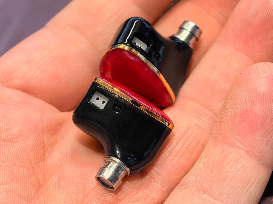 Цифры на лицевой стороне корпусов кажутся, как будто выступающими над ним, но это иллюзия. Они написаны и покрыты лаком. Коннекторы — 0,78 мм, диаметр звуковода — 5 мм. Радом с первым элементом есть два компенсационных отверстия.