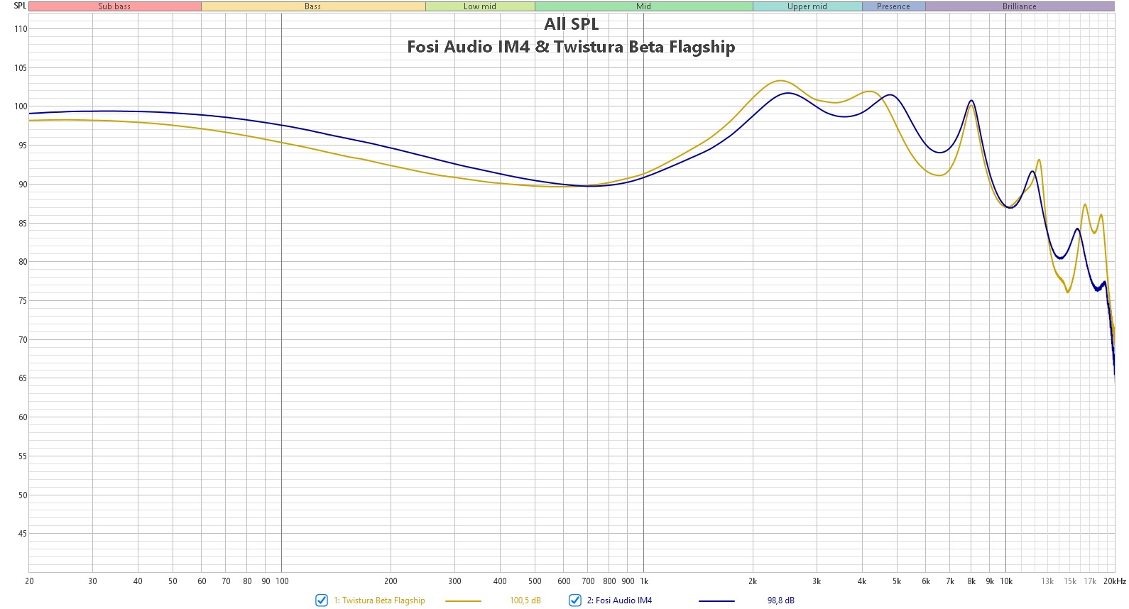 В сравнении они чуть спокойнее, чем Twistura Beta Flagship и у нас лучше выражены ритм секция. В то время как KiwiEars Orchestra II, ожидаемо, ровнее. Ну и Moondrop Starfield 2 капельку ярче и менее выражены на басах. То есть это тоже вариация кривой диффузного поля в её экстремуме.