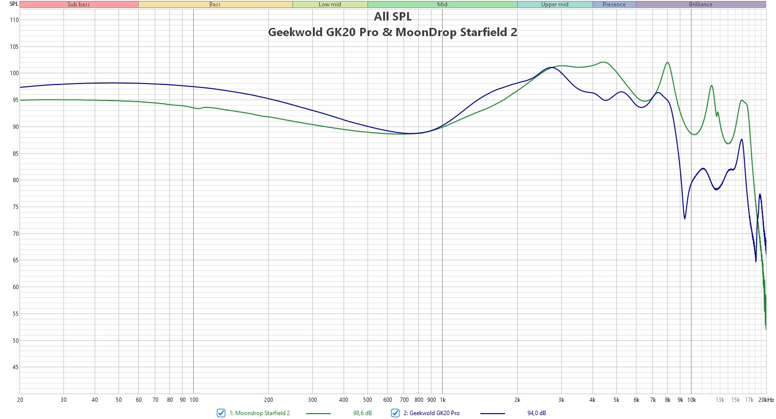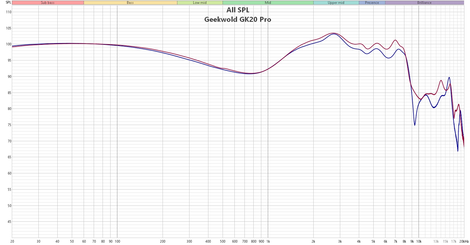 Итогом, гибридные наушники Geekwold GK20 Pro удобно сидят, с богатым оформлением, нормальным кабелем в комплекте, шикарно согласованными излучателями и достойно настроенной АЧХ. Увы, это не совсем Харман, но что-то близкое. В минусы же отнесу относительно высокие искажения в 2.6%, какую-то кустарную надпись на фейсплейтах и сильно уж прибранную высокочастотную составляющую.