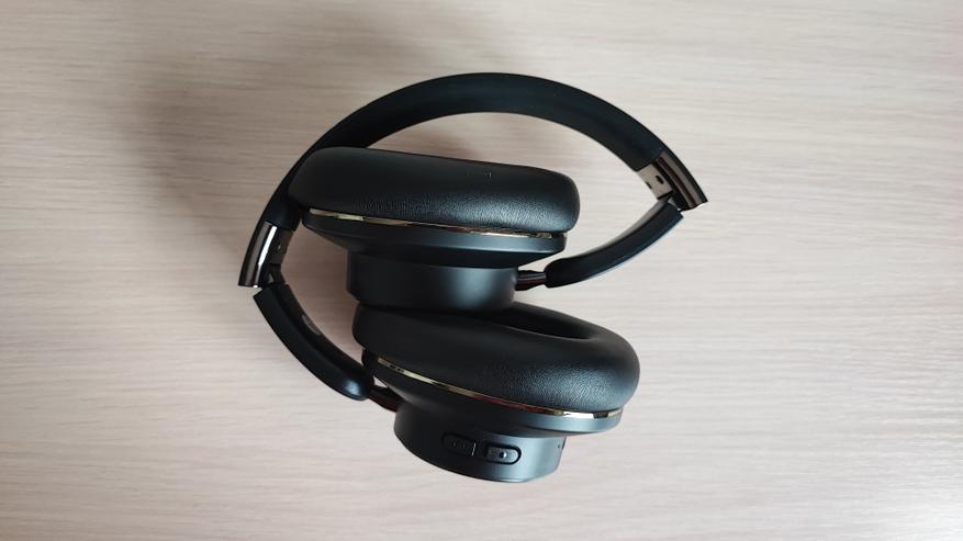 По обеим сторонам пластикового корпуса одного и наушников располагаются регуляторы громкости и кнопки включения. Там же расположено гнездо для зарядки наушников и порт AUX. Подгонка у деталей хорошая, люфты незаметные. Сборка выполнена надежно. В целом по моему мнению наушники визуально выглядят довольно хорошо. Конструкция складывается и поэтому они занимают мало места и смогут поместиться в любою небольшую сумку или рюкзак. Также каждый из наушников может поворачиваться из стороны в сторону, за счет этого их удобнее носить на шее, когда вы ими не пользуетесь.