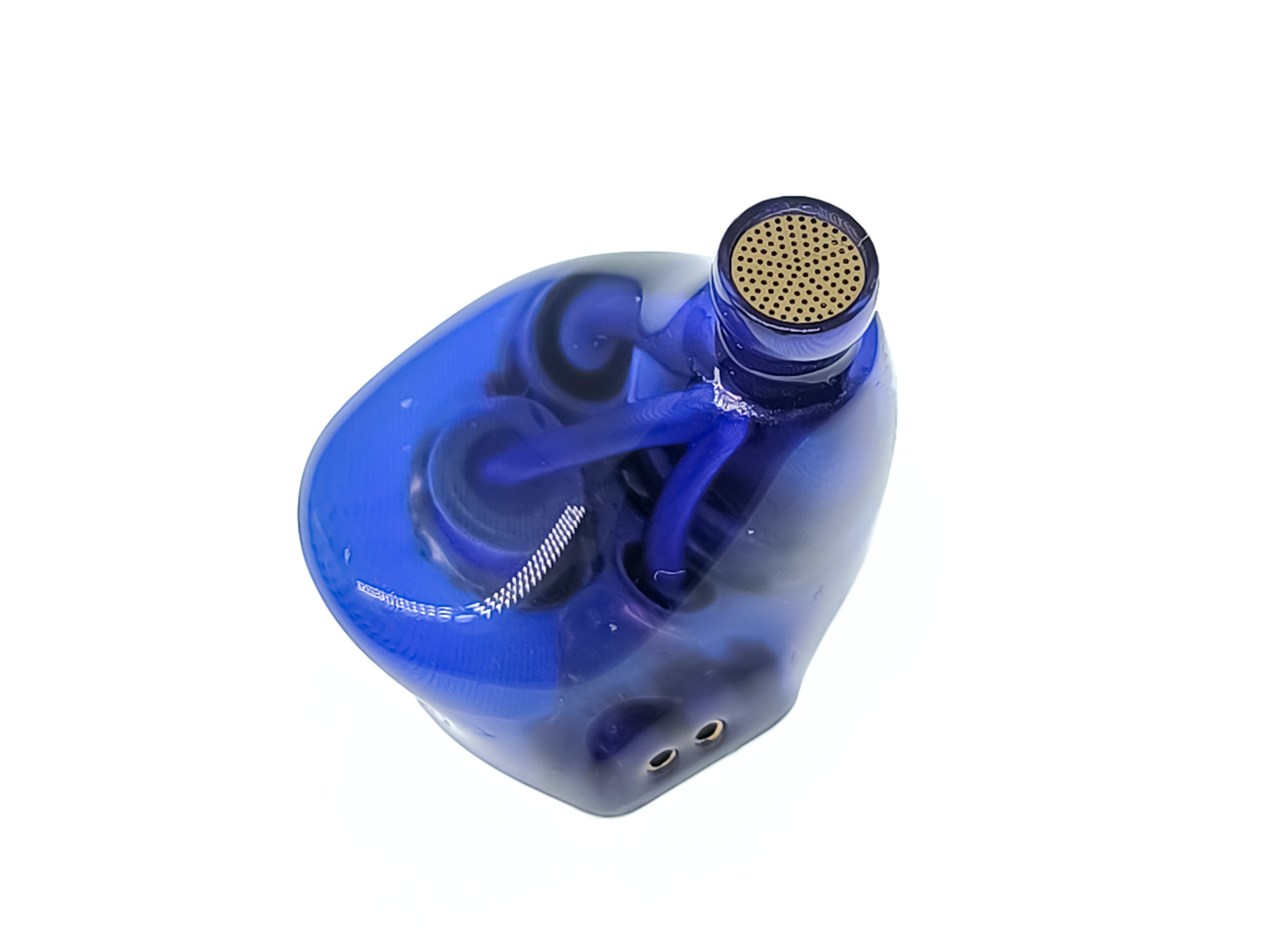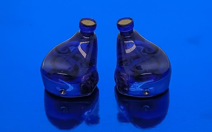Диаметр звуководов 5.6 mm. Защитные сетки металлические с мелкой перфорацией. На заднем торце наушников находится компенсационные отверстия в виде металлических сопел, а сверху наушников расположены двухпиновые разъемы для подключения кабеля.