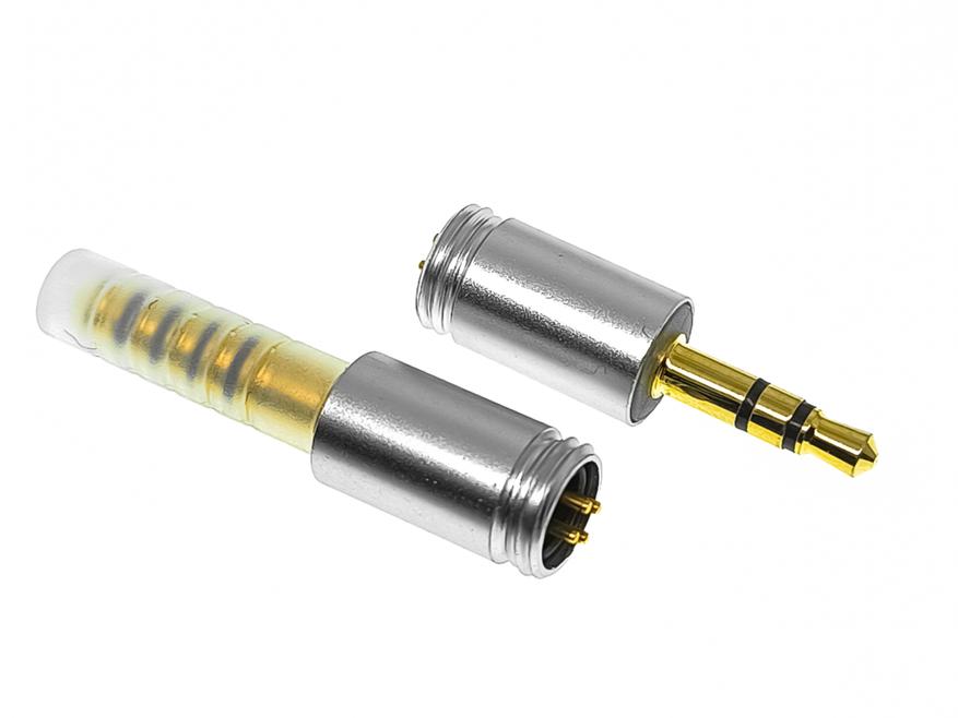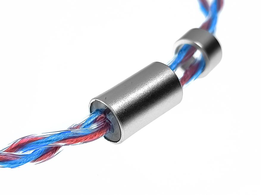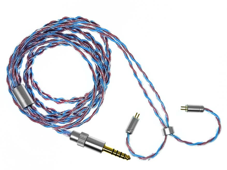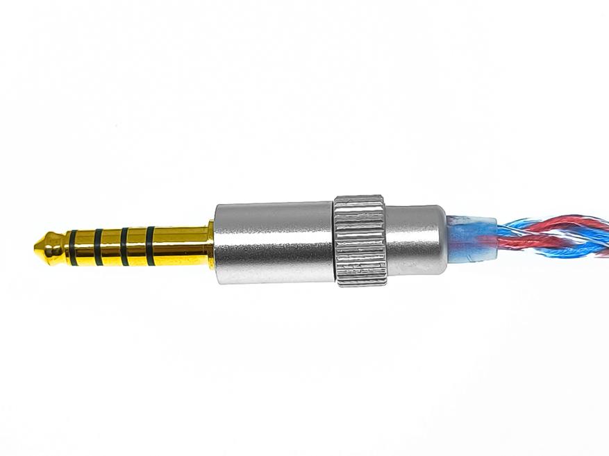 Для подключения кабеля к наушникам используются стандартные коннекторы 2-pin 0.78 mm. Для стягивания проводов предусмотрен слайдер со свободным (слишком свободным) скольжением. Кабель является модульным: штекер в нем легко меняется на другой. В комплектацию входит обычный 3.5 mm штекер, а так же балансный 4.4 mm. Для смены штекера нужно открутить зажимное кольцо, выдернуть штекер из четырехконтактного разъёма, вставить на его место другой, и затянуть кольцо.