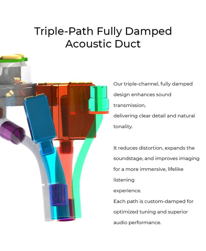 Так же на борту наушников имеется трехполосный «двойной» кроссовер, который состоит из электронной платы и трёх акустических трубок, для распределения звука по частотам и минимизации искажений.