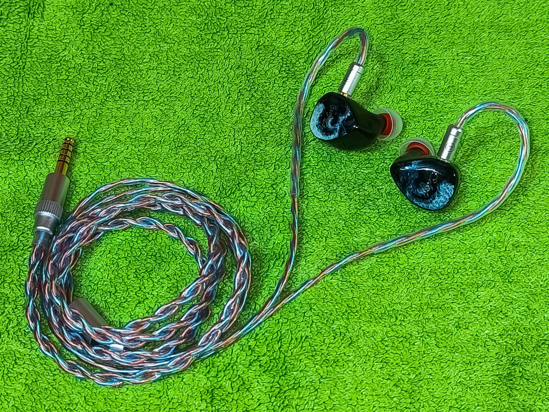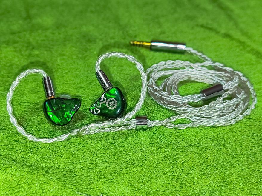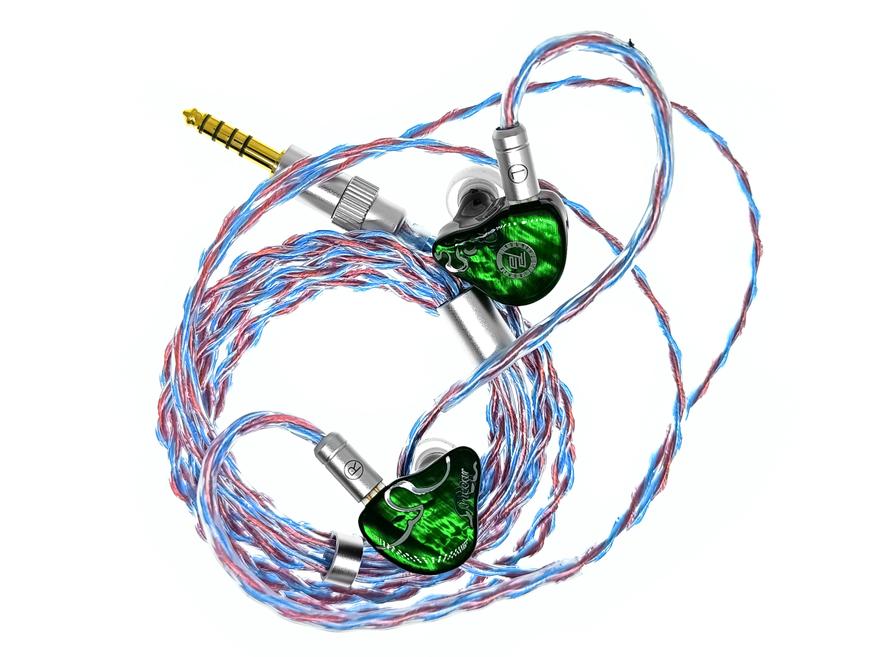 На фоне других, данный кабель выделяется своей яркой медно-синей окраской. Выглядит это интересно, но как мне кажется, такое цветовое оформление провода лучше гармонирует с радужными Juzear Defiant, а с зелёными лучше сочетался бы медно-зеленый провод.