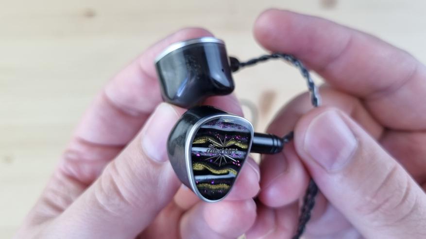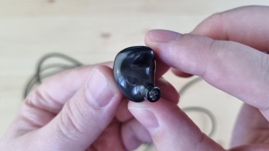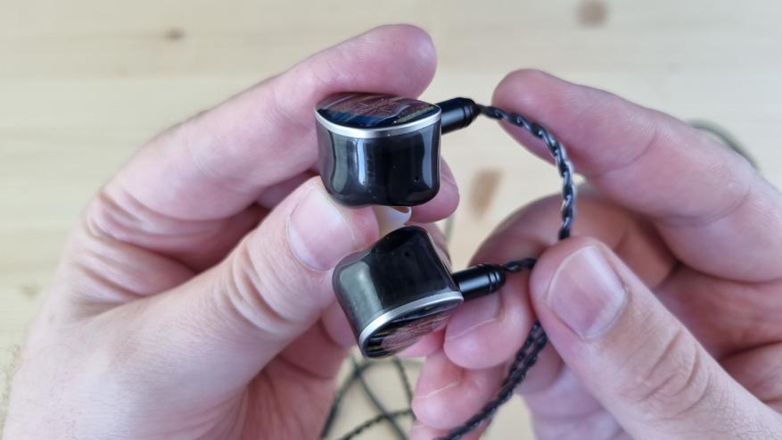 Чашечки в меру крупные, сделаны из смолы, с парой отверстий для компенсации, пяточком на звуководе и стильно оформленной внешней частью.