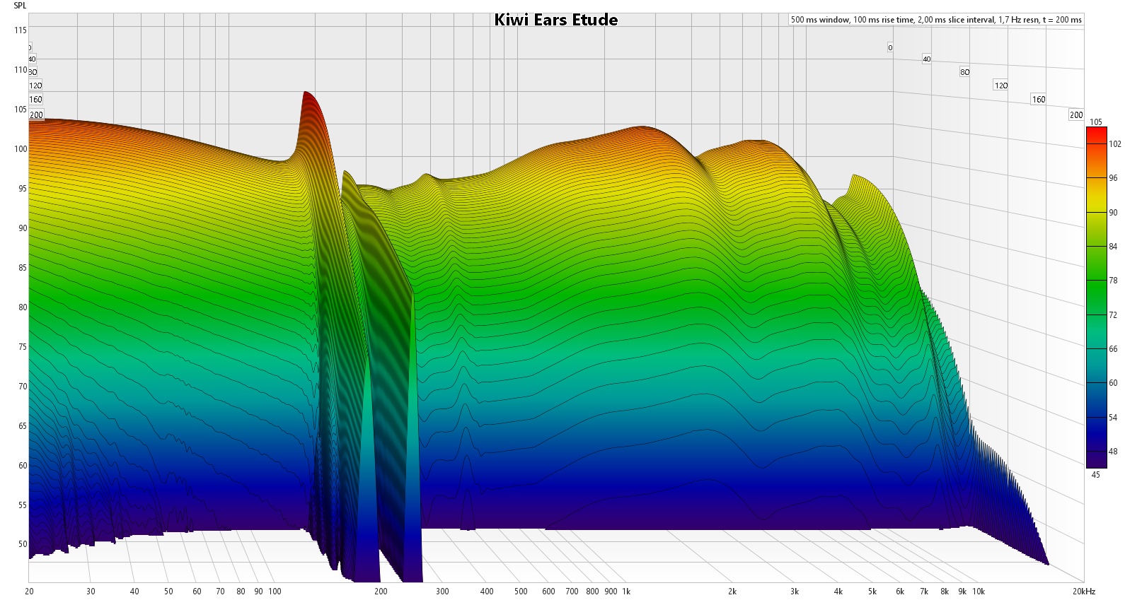 По АЧХ же мы имеем подъем низких частот на 9 дБ, вибрационный всплеск в районе 200 Гц, аккуратно приподнятую область разборчивости, ещё один подъем на 6.5 кГц и плавно затухающие высокие частоты.