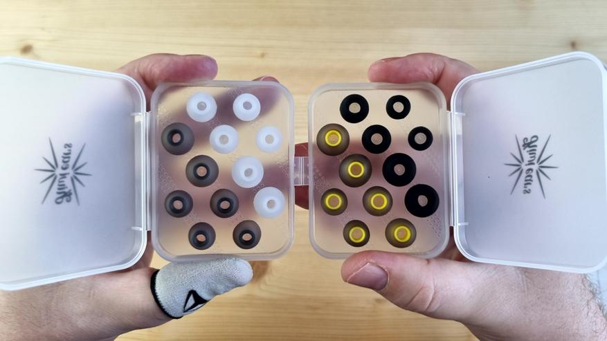 Внутри была документация, вместительный плотный бокс с мягкой крышкой и целых четыре набора силиконовых амбушюр, как говорится, на любой вкус. Нет только широких по типу KB-07.