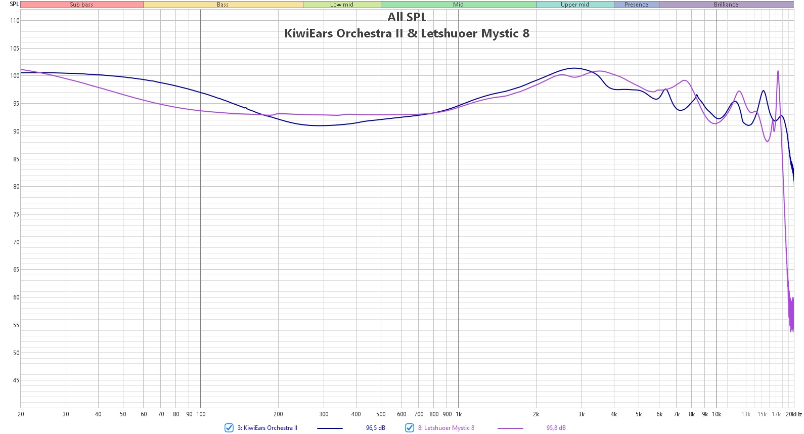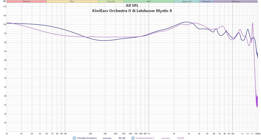 В сравнении с более дорогими Mystic 8, у нас больше «жирка», плюс-минус схожий бас и распределение частот, в остальном же — всё аккуратнее у Letshuoer. Mythera заметно ярче, жестче и грубее, зато выразительнее и четче. Для всяких экстремальных жанров CVJ, возможно, будут даже предпочтительнее. Orchestra II — мягче, они певучие и музыкальные, но в то же время с прекрасным контролем, разрешением и разделением инструментов.