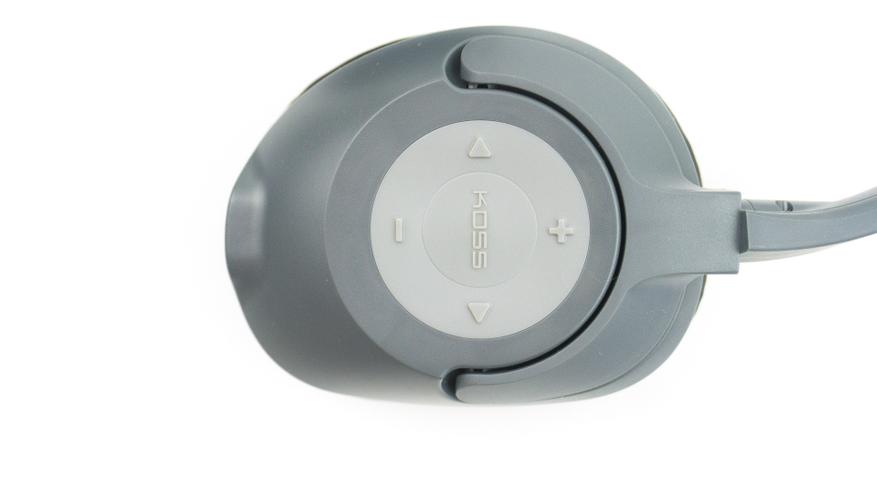 Алгоритм управления KOSS BT539i интуитивно понятный и легко читаем нажатием пальца вслепую. Включение/выключение — центральная кнопка, она же отвечает за сопряжения устройства и прием звонка. Регулировка громкости и управления треками расположена кольцом вокруг центральной кнопки.