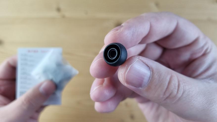 В комплекте шла макулатура, пара пенок и набор тех самых черных силиконовых амбушюр с насечками.