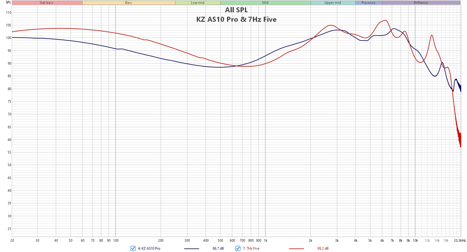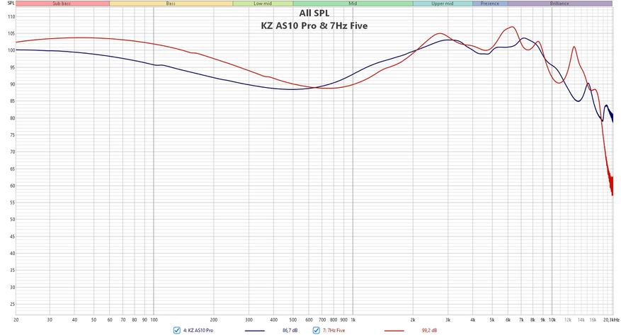После 7Hz Five такой график уже не особо пугает. Тем более, что и баса у нас заметно меньше, и нет тех возмутительных пиков на высоких частотах. То есть Knowledge Zenith настроили свою новинку чуть лучше, чем нашумевшие 7Herz Five.