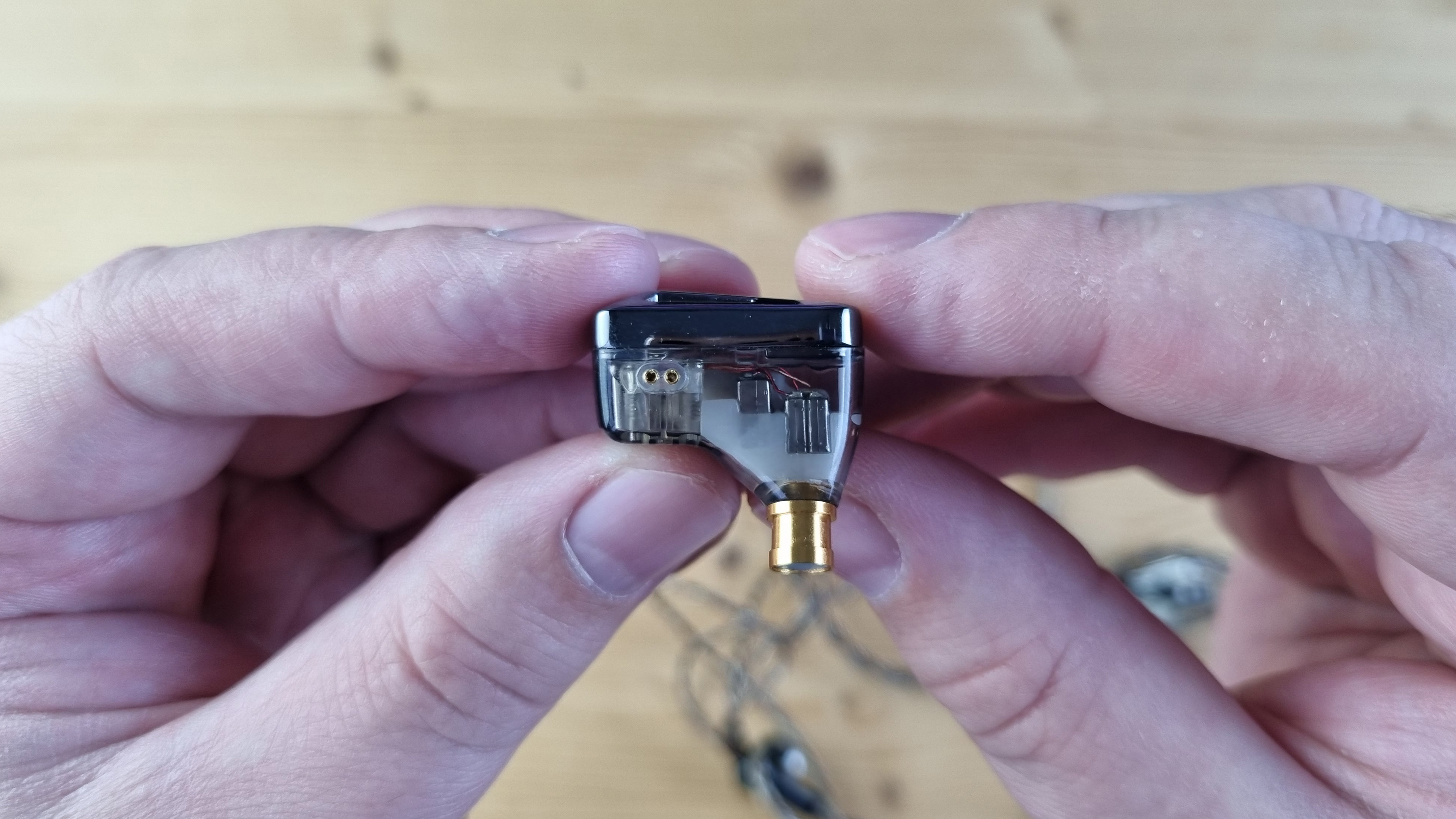 Чашечки сделаны из пластика, частично залитого белой смолой. Но на возможность изучить их начинку этот факт никак не повлиял. Корпуса по размерам, примерно как у 7Hz Five, только чуток потолще.
