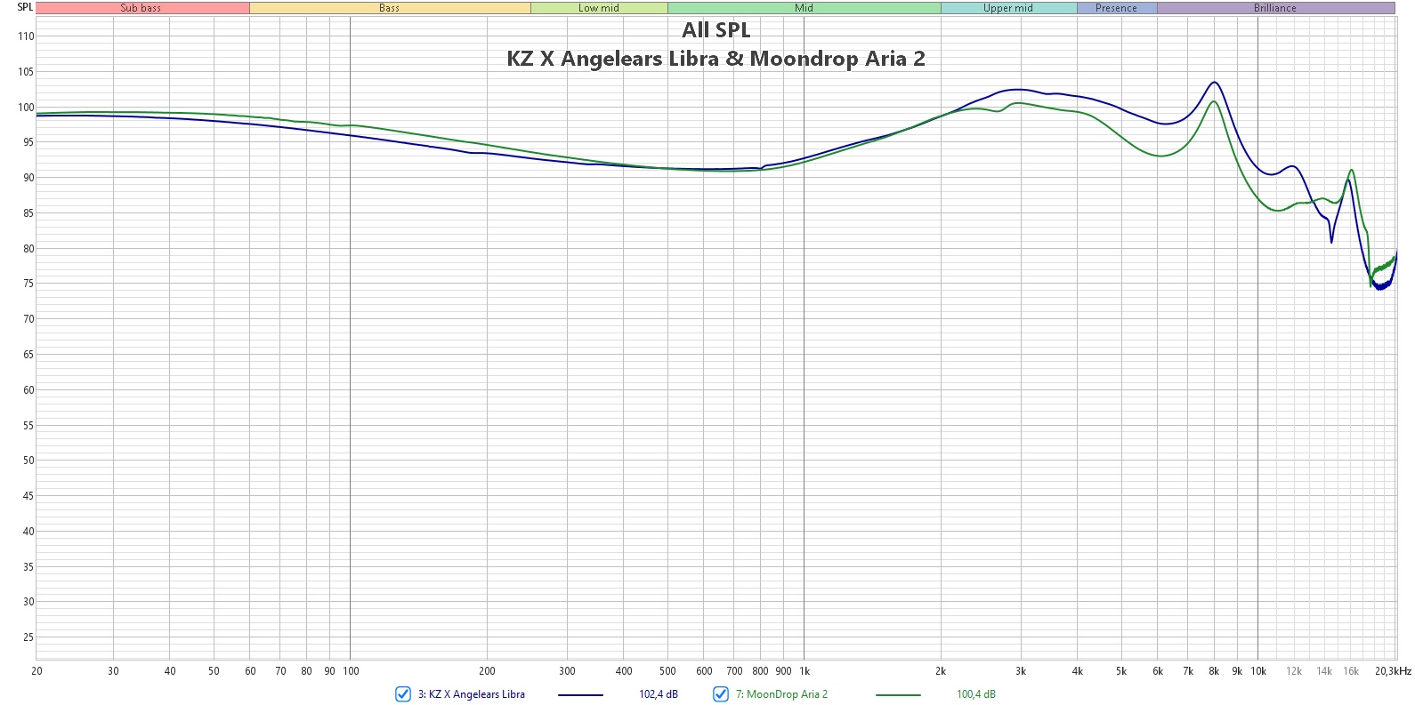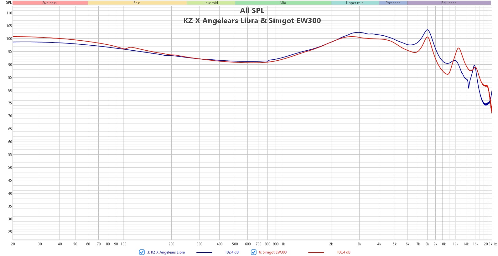 Это уже всем хорошо знакомая настройка по стандарту Harman 2019 года. Для примера можно сравнить, как это выглядит на фоне Simgot EW300 и Moondrop Aria 2. Чуть-чуть нам подчеркнули верха, но не более того. Те, кто оценивают звук в основном по графикам — должны остаться в полном восторге.