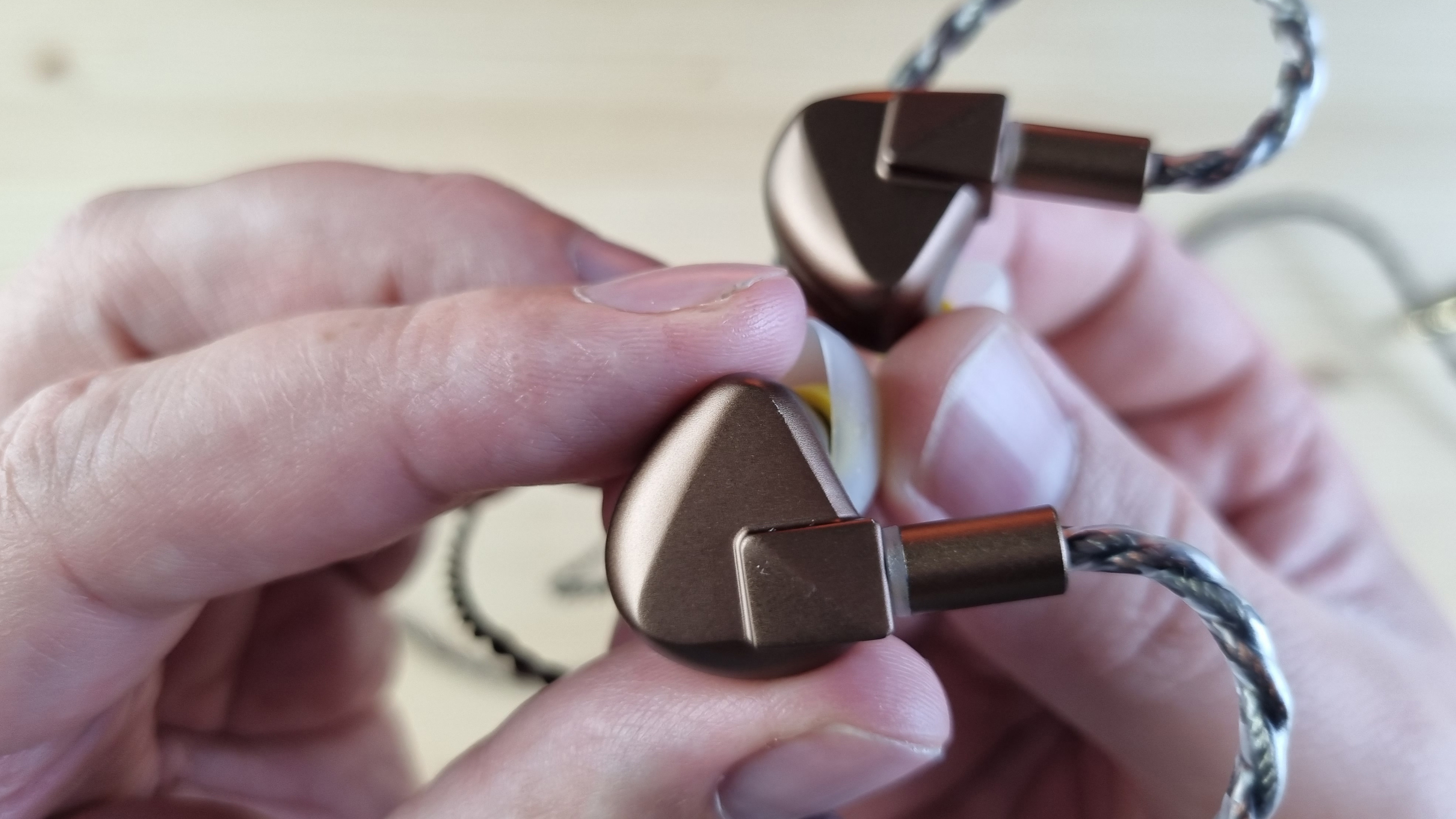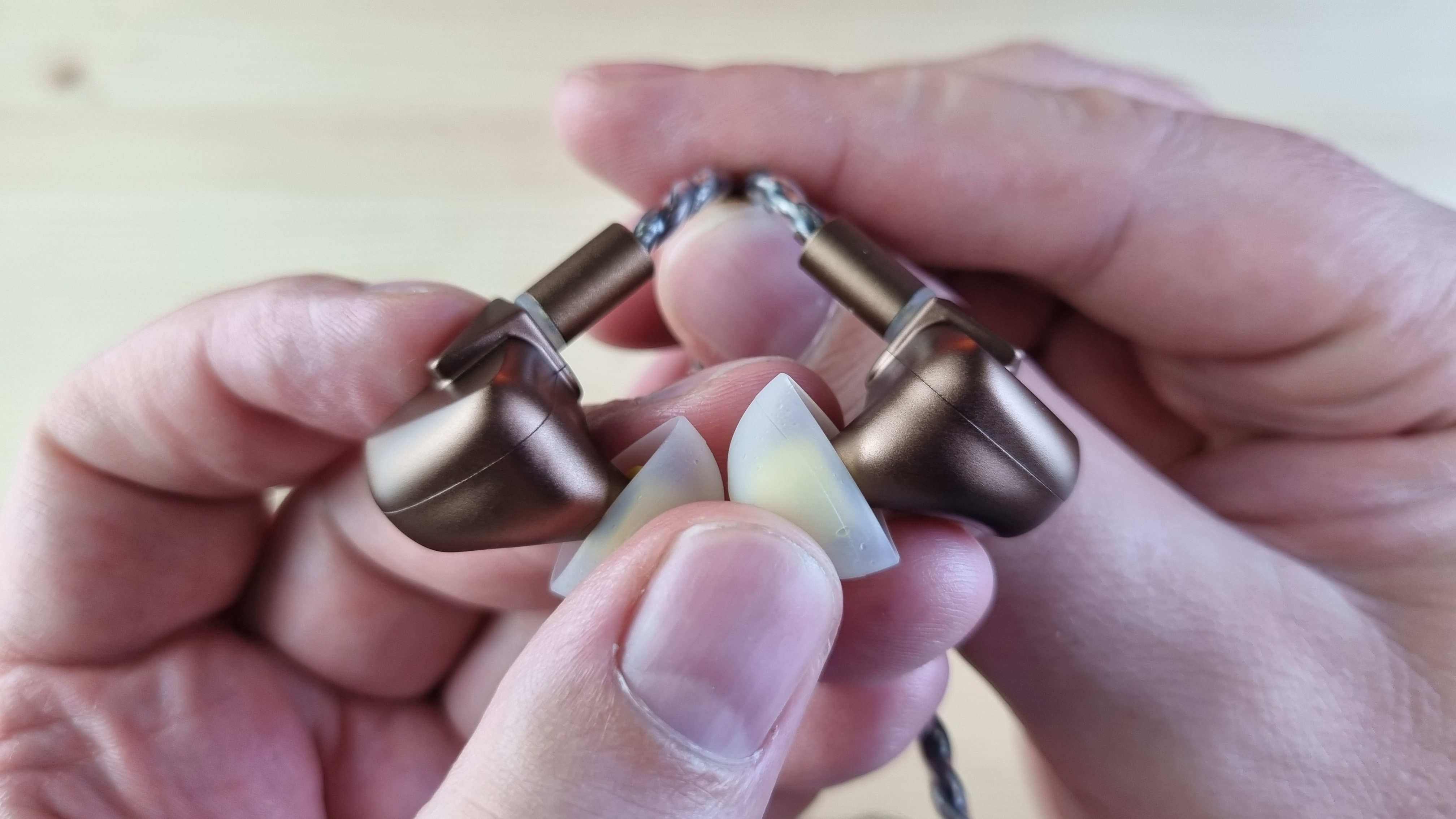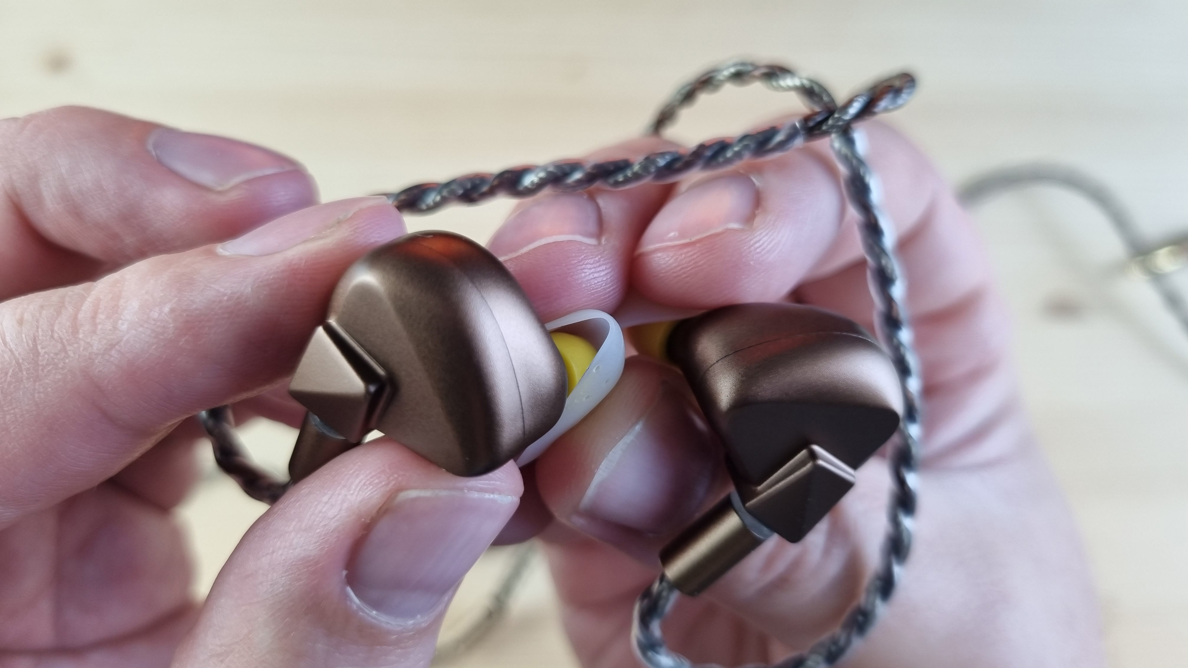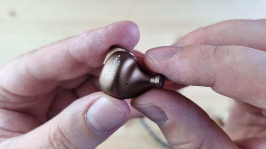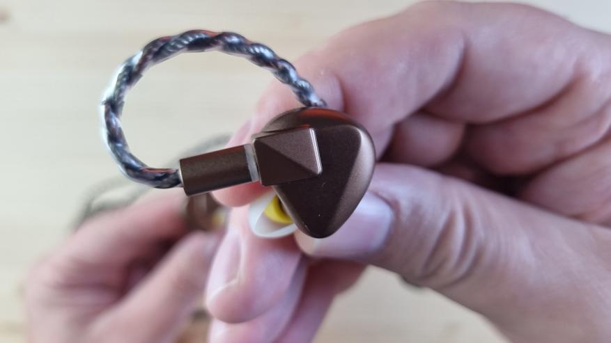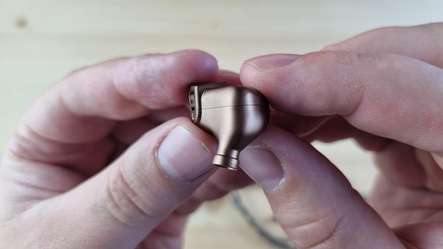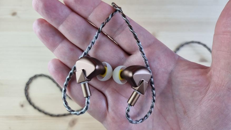 Чашечки сделаны из металла, со средних размеров звуководом, двумя отверстиями для компенсации и скромно оформленной внешней частью.