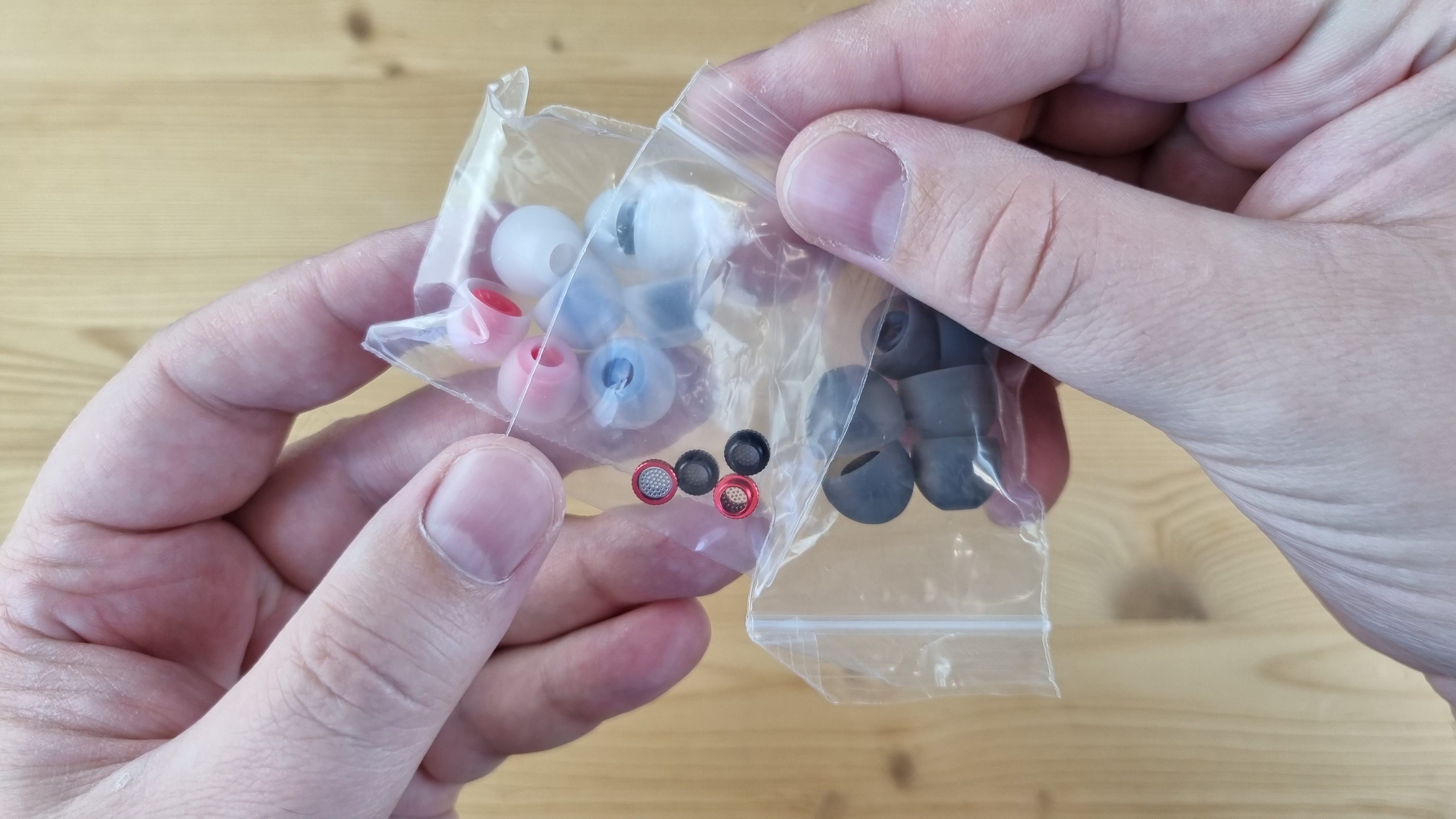 В комплекте была документация, плотный синий бокс, пакетик с фильтрами и два набора неплохих силиконовых амбушюр.