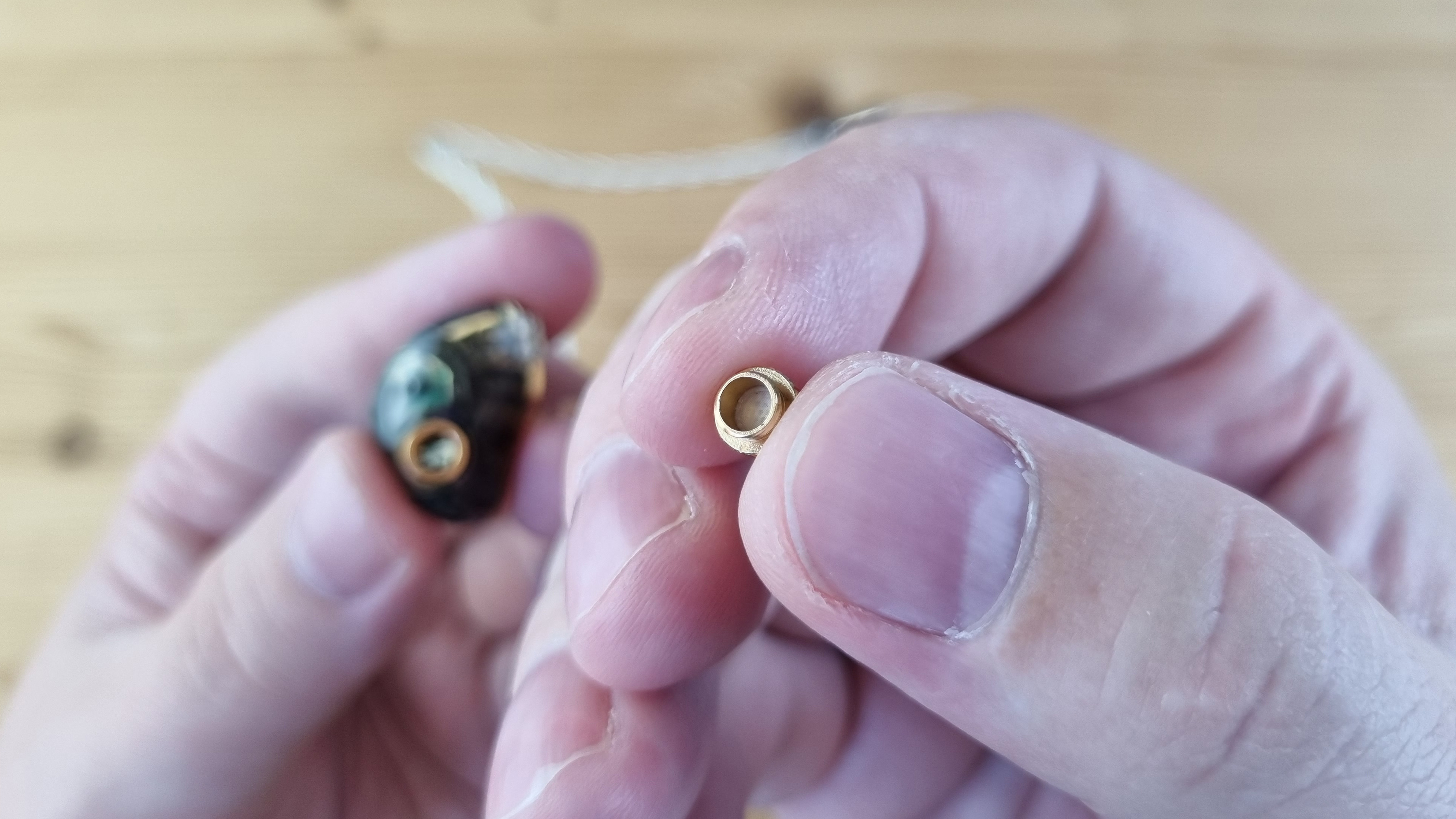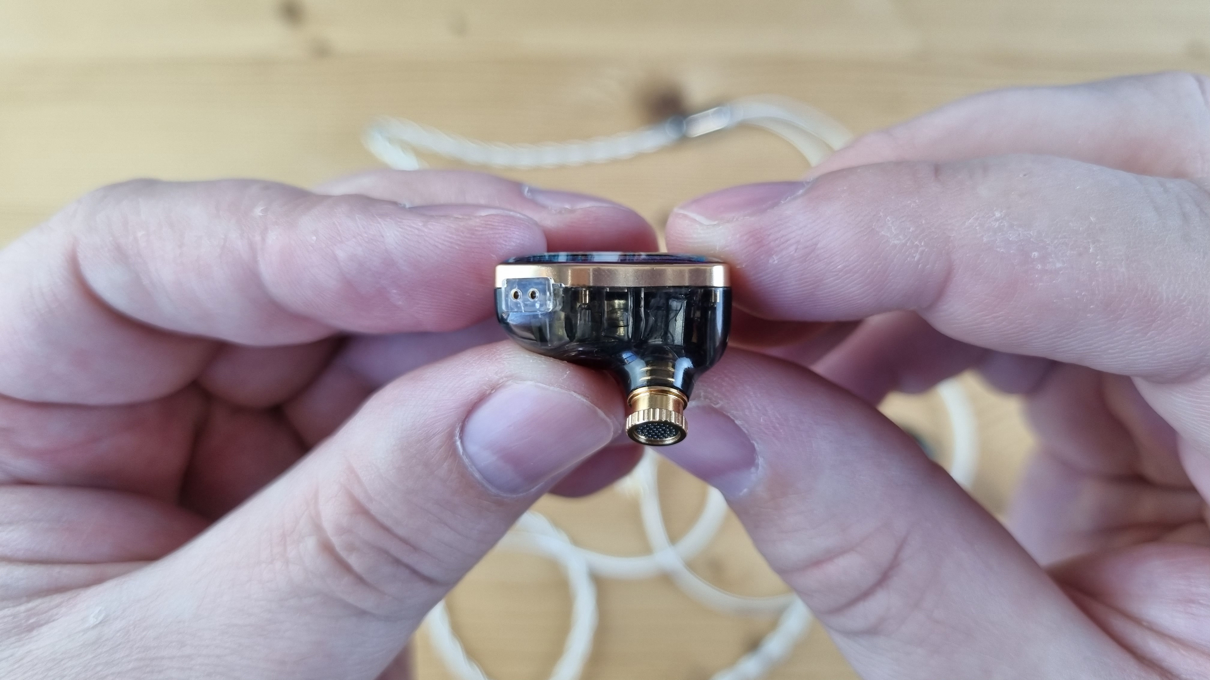 Золотые звуководы, накрученные нам из коробки, тоже дают глубокий динамический бас и по-аналоговому теплую и очень подробную серединку, однако на самом верху с ними есть небольшая заглушенность и неестественно звучащая резкость, негативно влияющая, например, на верхние регистры женского вокала. Да, всё не так плохо, как у 7Hz Five, однако назвать этот звук взрослым или серьёзным лично у меня язык не повернется. С черными насадками приходит басхедность, и сам звук этим как бы уравновешивается.