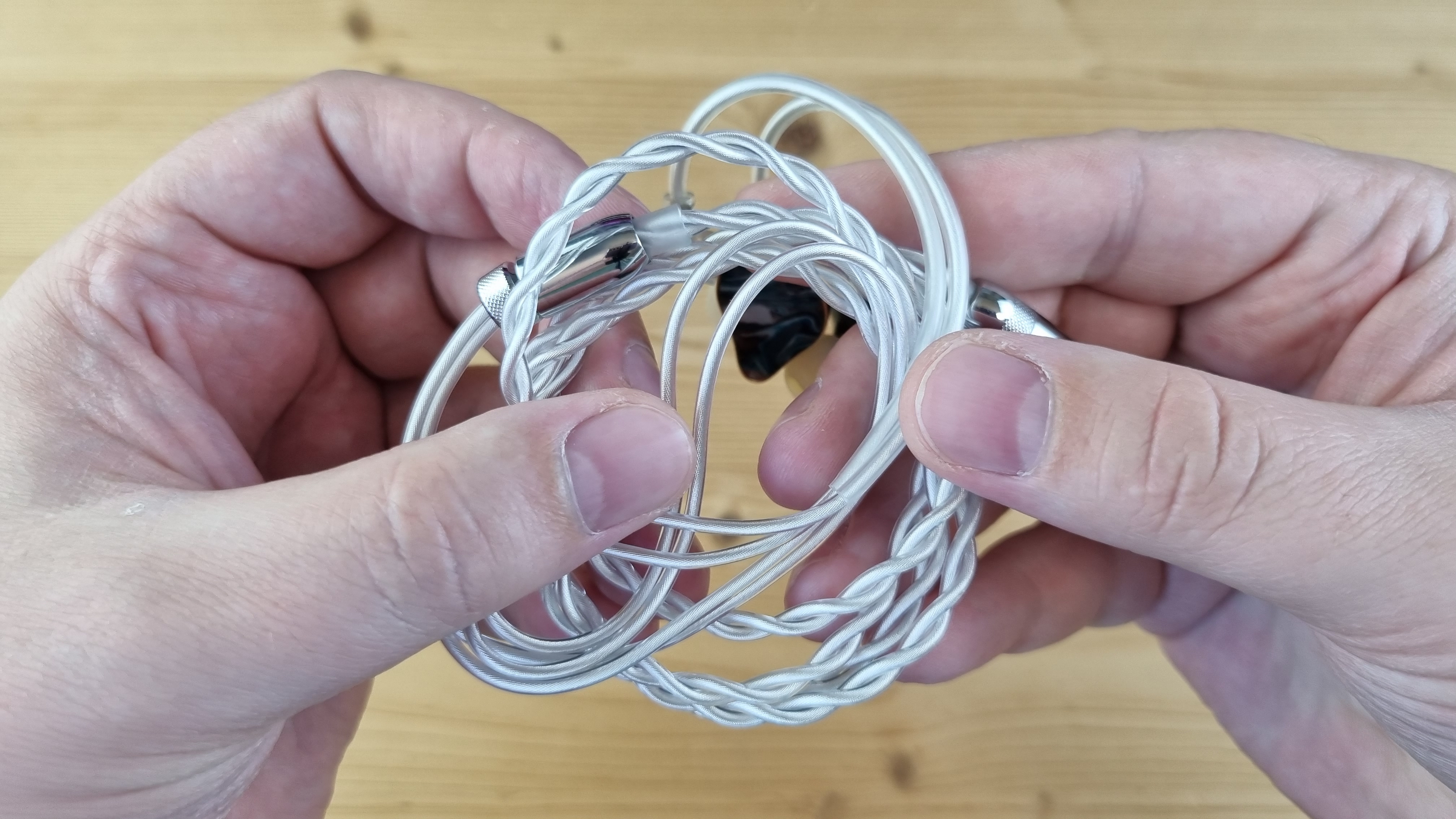 Кабель внешне приятный, он толстый, витой, с вилочными QDC коннекторами и с сопротивлением на левом и правом канале по 0.6 Ома, а на общем — 0.135 Ома.