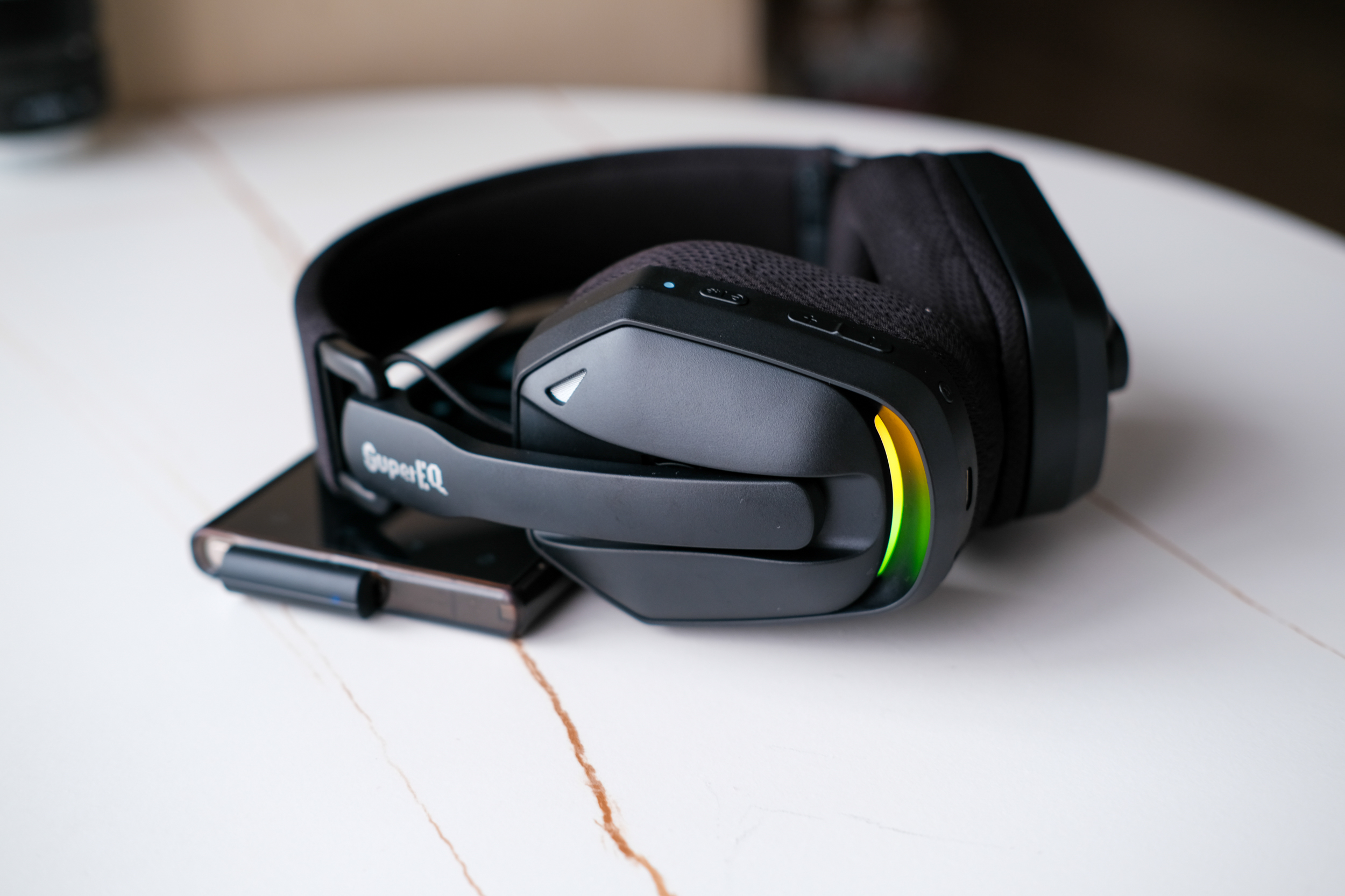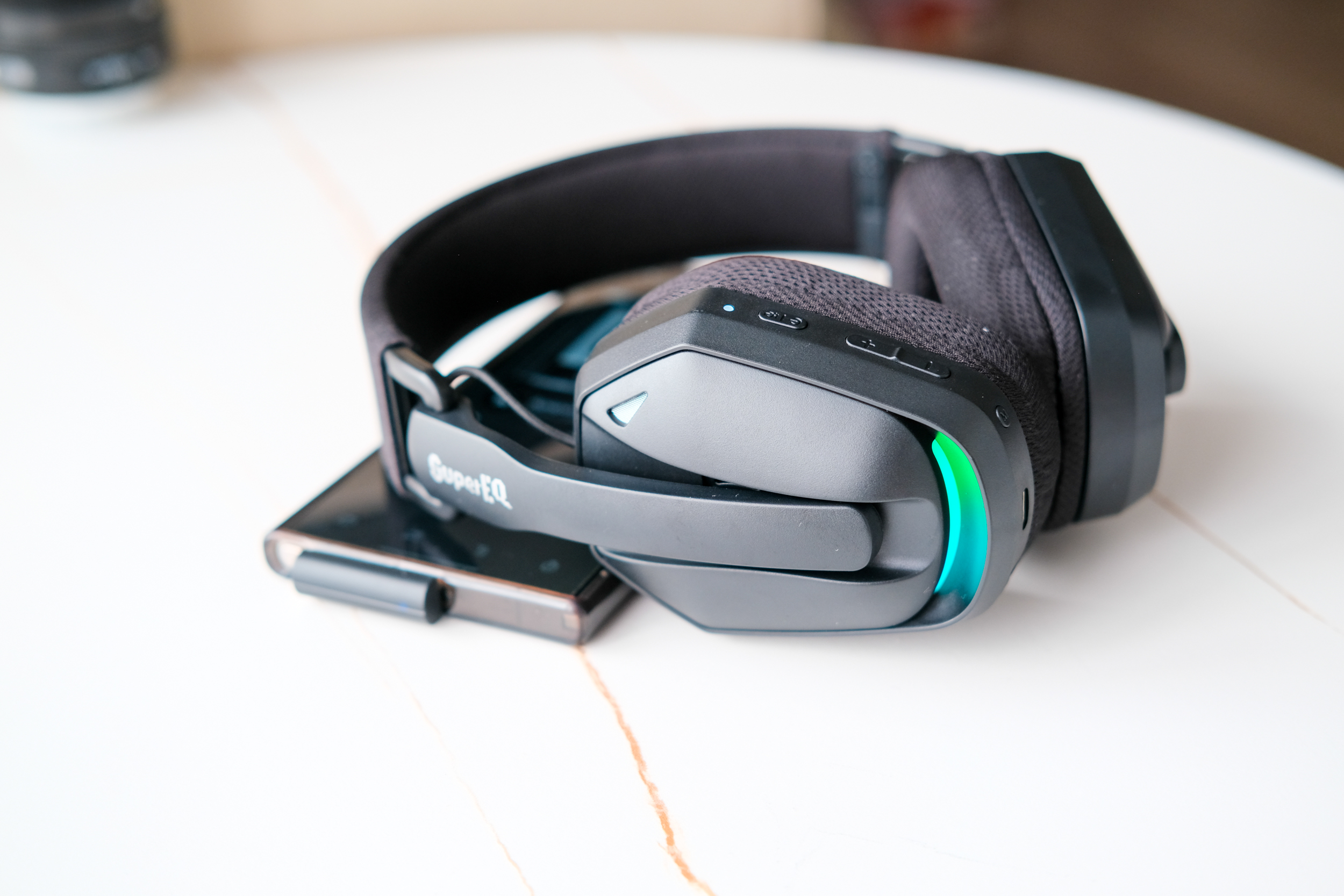 - Материалы: мягкие амбушюры, оголовье с накладками, RGB подсветка на чашках