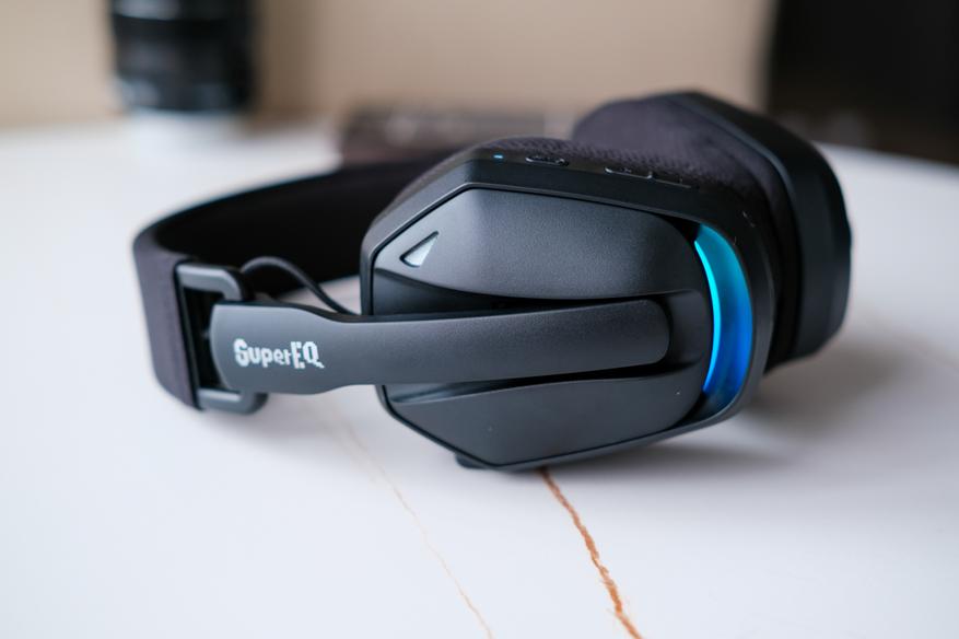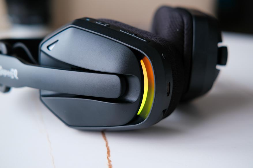 Также во включённом состоянии на наушниках есть RGB подсветка. Ну это ведь игровые наушники, поэтому без подсветки никак. Правда стоит отметить что яркость подсветки не сильно большая, к тому же смотрится всё более или менее органично.