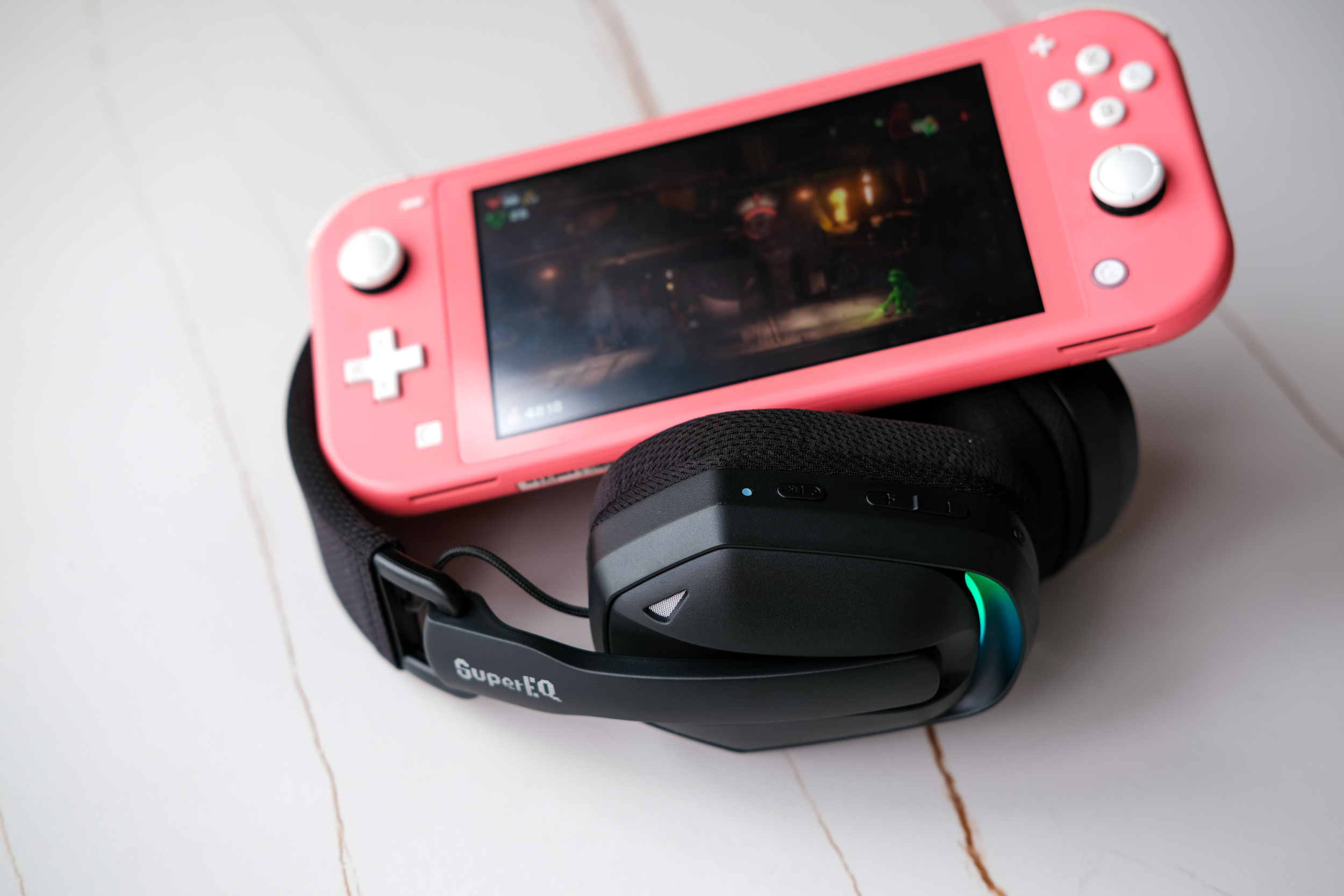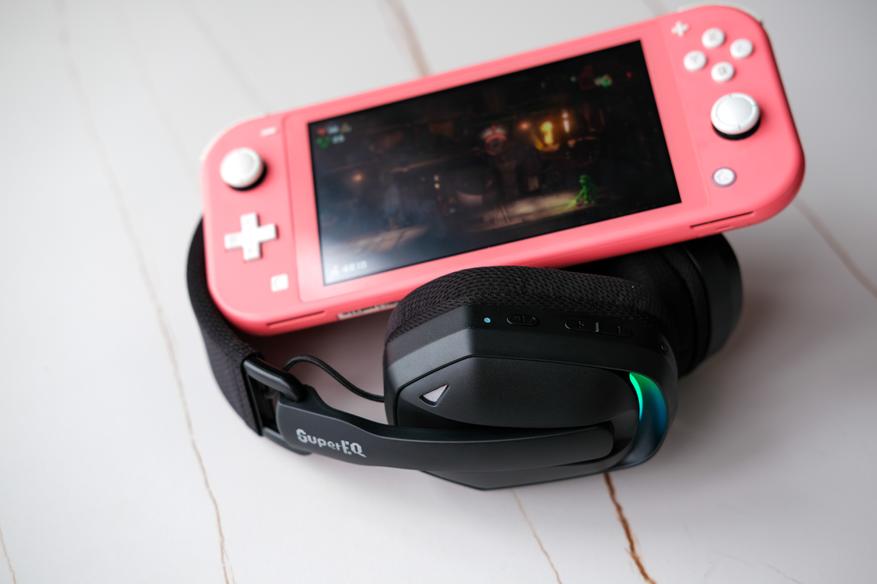 Теперь про то, с какими устройствами работают наши наушники SuperEQ G19BT. Во-первых, Nintendo Switch Light. Я сравнил звук через подключение по Bluetooth и через адаптер.