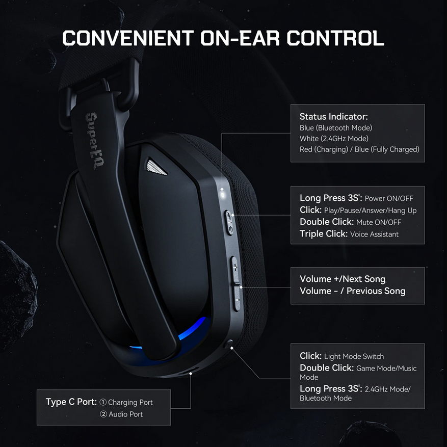 Беспроводные игровые наушники SuperEQ G19BT
