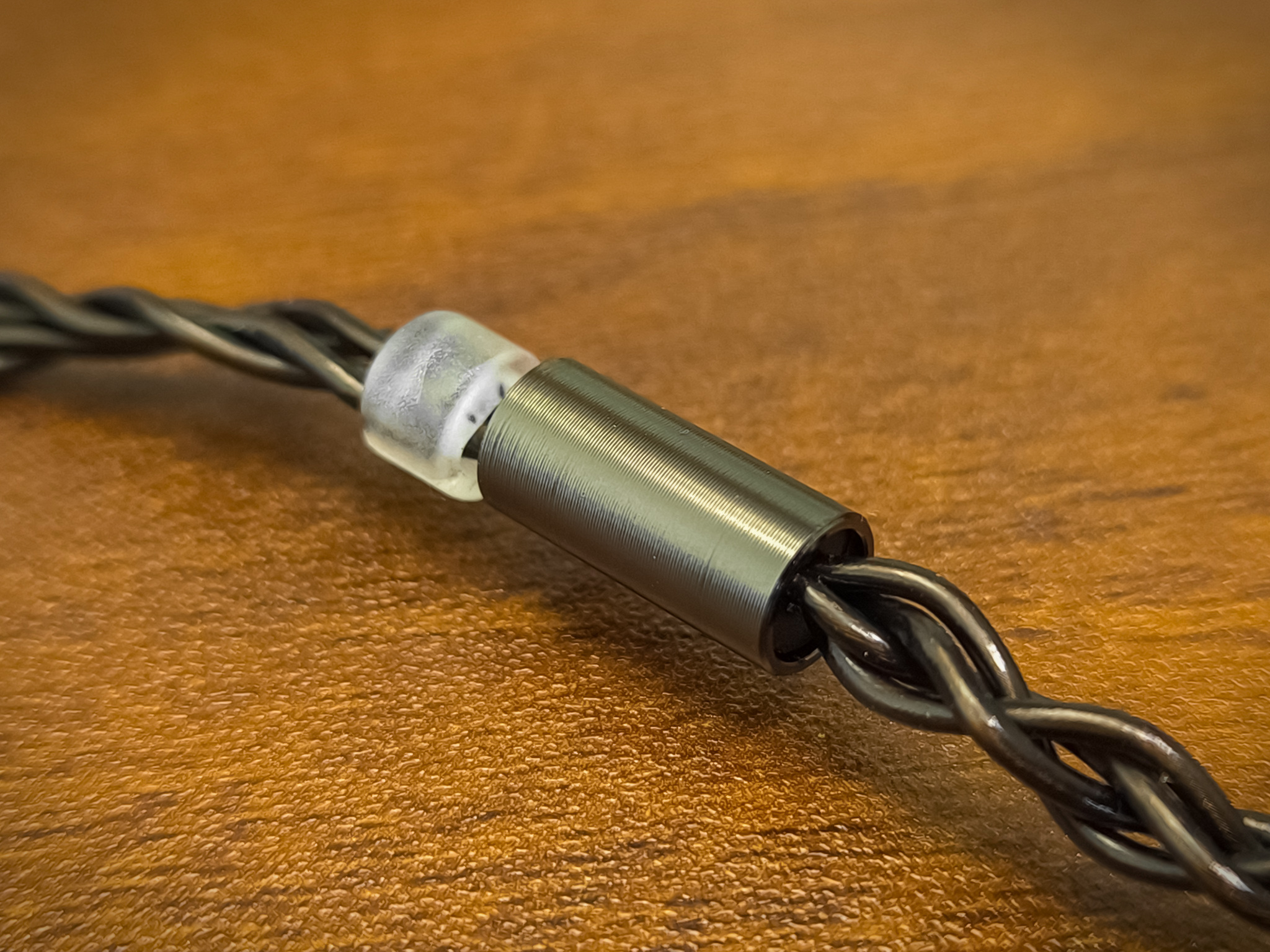 Длина кабеля стандартная: 1.23 метра. Кабель мягкий, но не слишком, не как шнурок — есть лёгкая упругость, которая предотвращает его спутывание. Разветвитель и корпуса коннекторов выполнены в едином стиле — металлические, с кольцевой фрезеровкой и покрытые темным хромом. Слайдер, который стягивает два верхних провода, пластиковый и с тугим ходом.