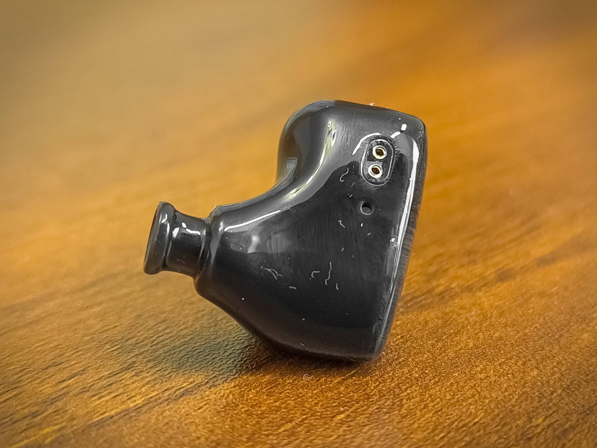 Что бы минимизировать искажения и убрать давление на перепонки, предусмотрено два компенсационных отверстия: одно из которых находится возле звуковода, а другое на верхнем торце — возле двухпинового коннектора.