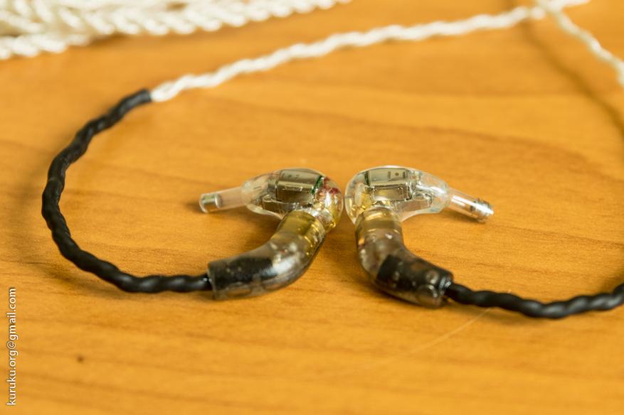 Наушники выглядят необычно и интересно. Корпус изготовлен из прозрачного акрила, через который видно внутреннее строение. Звуководы выполнены из эластичной трубки.