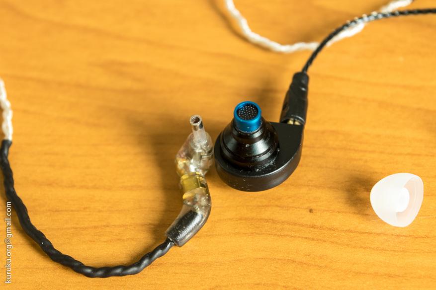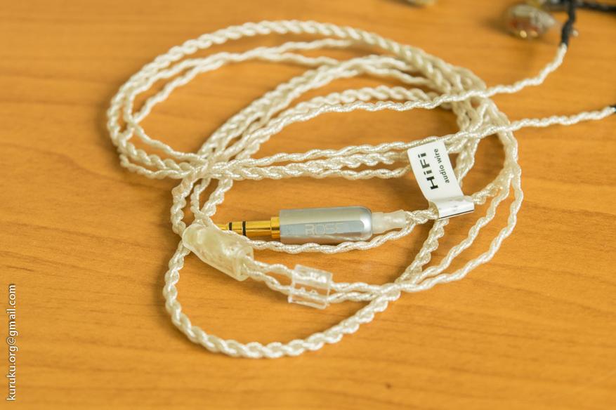 Кабель отличный — мягкий и очень гибкий. Разъём подключения MMCX. Из плюсов, стоит отметить уплотнительную «шайбу» на разъёме, благодаря которой кабель плотно фиксируется и наушник не прокручивается.