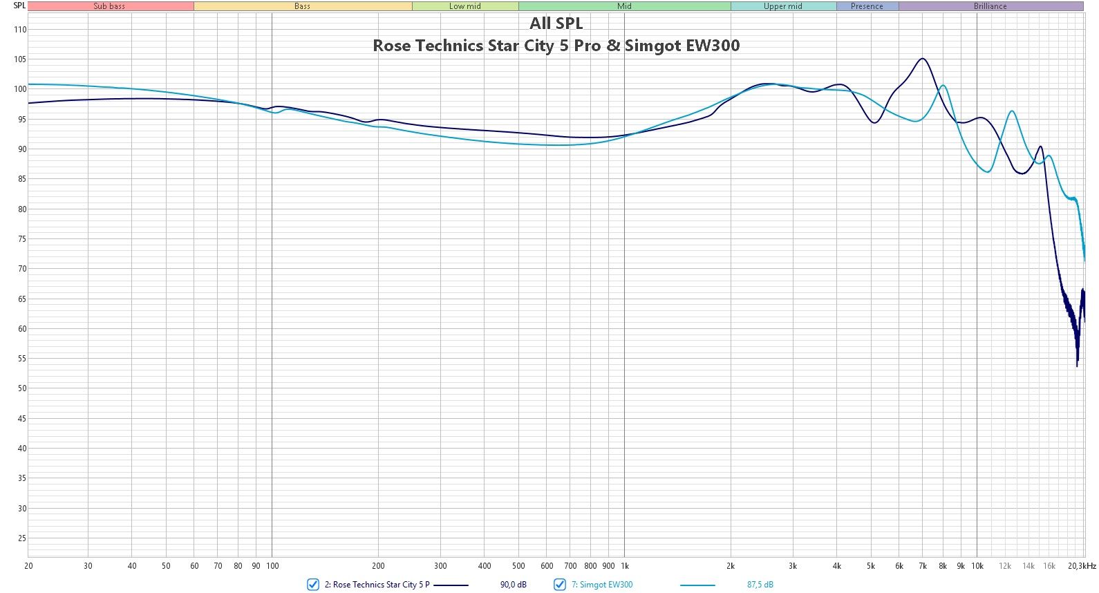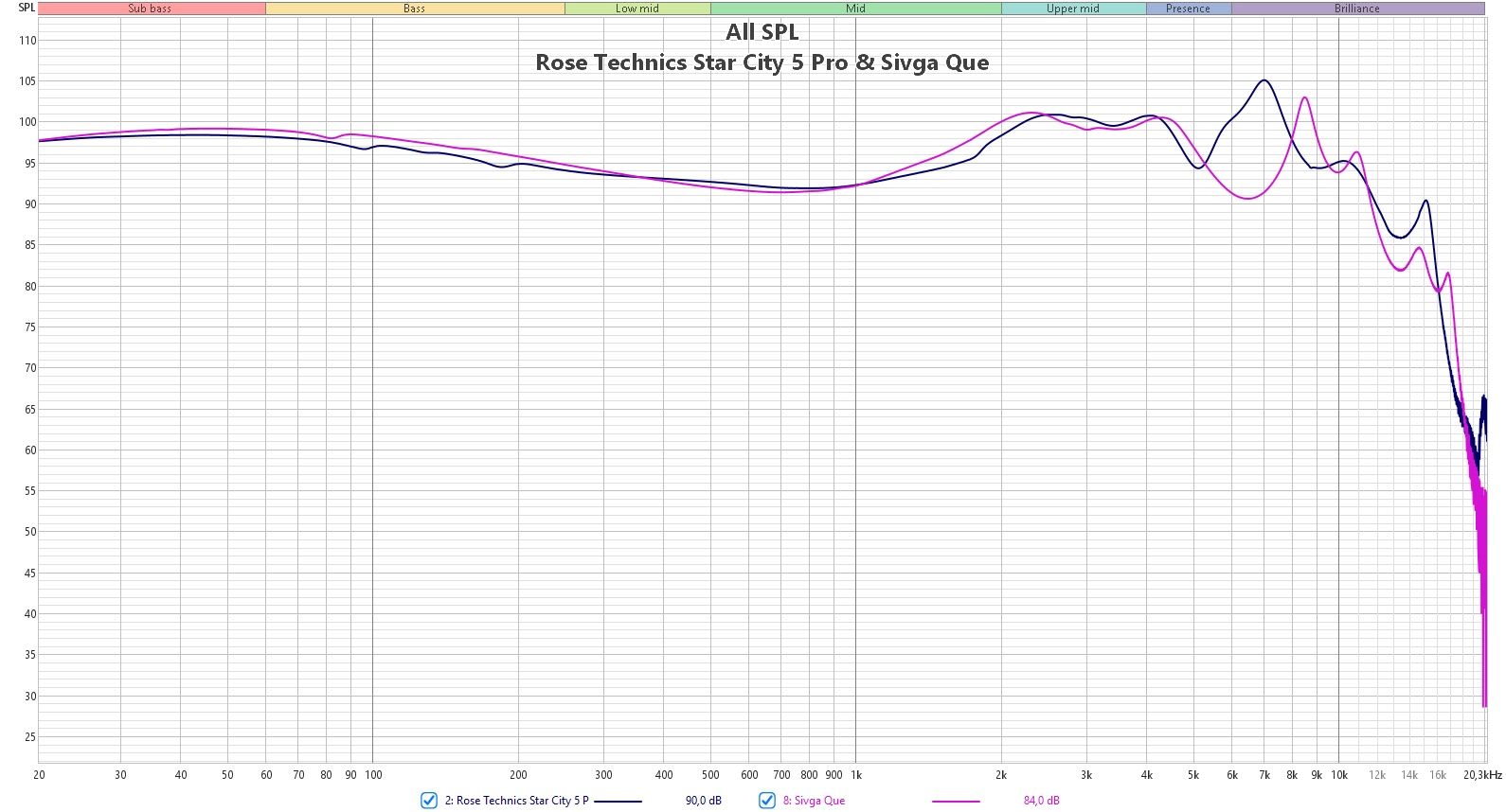 С Simgot EW300 они более-менее сопоставимы, за исключением доминирующего пика на 7 кГц. Dunu Titan S2 — ещё ближе, но тоже не такие агрессивные в области бриллианса. Ну и на закуску Sivga Que, у которых 7 кГц, наоборот, инвертировано. Настройка в целом нормальная, однако акценты нам, очевидно, ещё аукнутся.