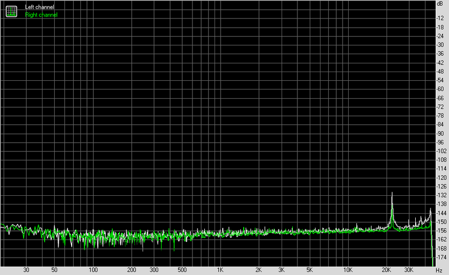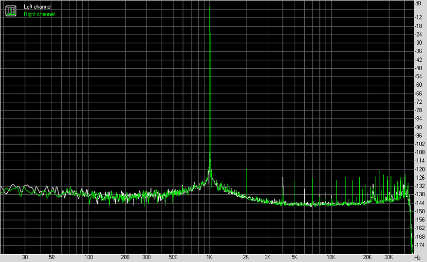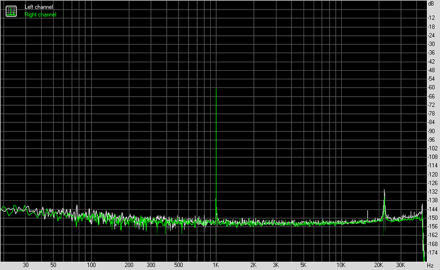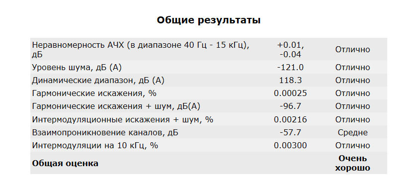 Почти идеально ровную АЧХ, шумы по большей части на минус 156 дБ, прекрасный динамический диапазон и искажения на уровне минус 120 дБ для гармонических и минус 123 дБ — для интермодуляционных.
