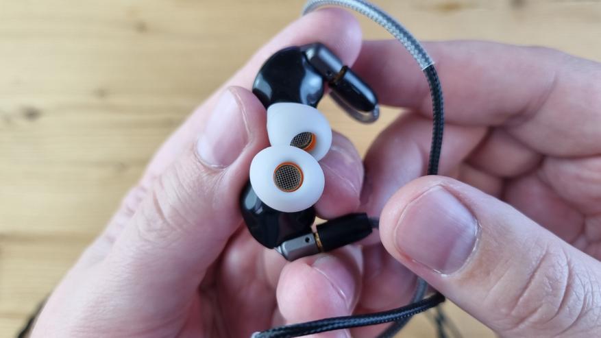 Чашечки сделаны из гипоаллергенной смолы, с довольно крупным звуководом, отверстием для компенсации и металлической нашлёпкой на внешней части. На которой, заметьте, тоже присутствует отверстие.