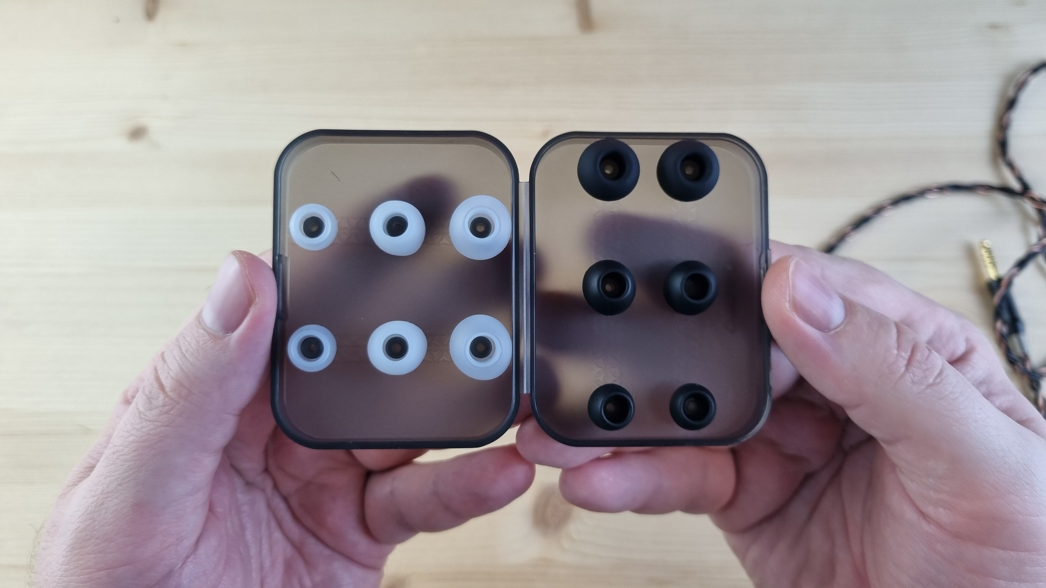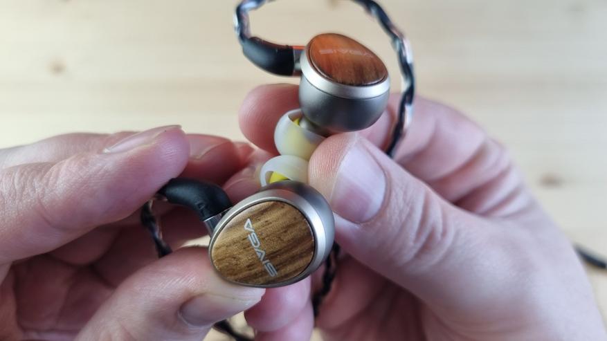 Чашечки полностью из металла, со средних размеров звуководом, отверстием для компенсации и внешней частью из настоящего дерева. Это уже как визитная карточка компании Sivga.