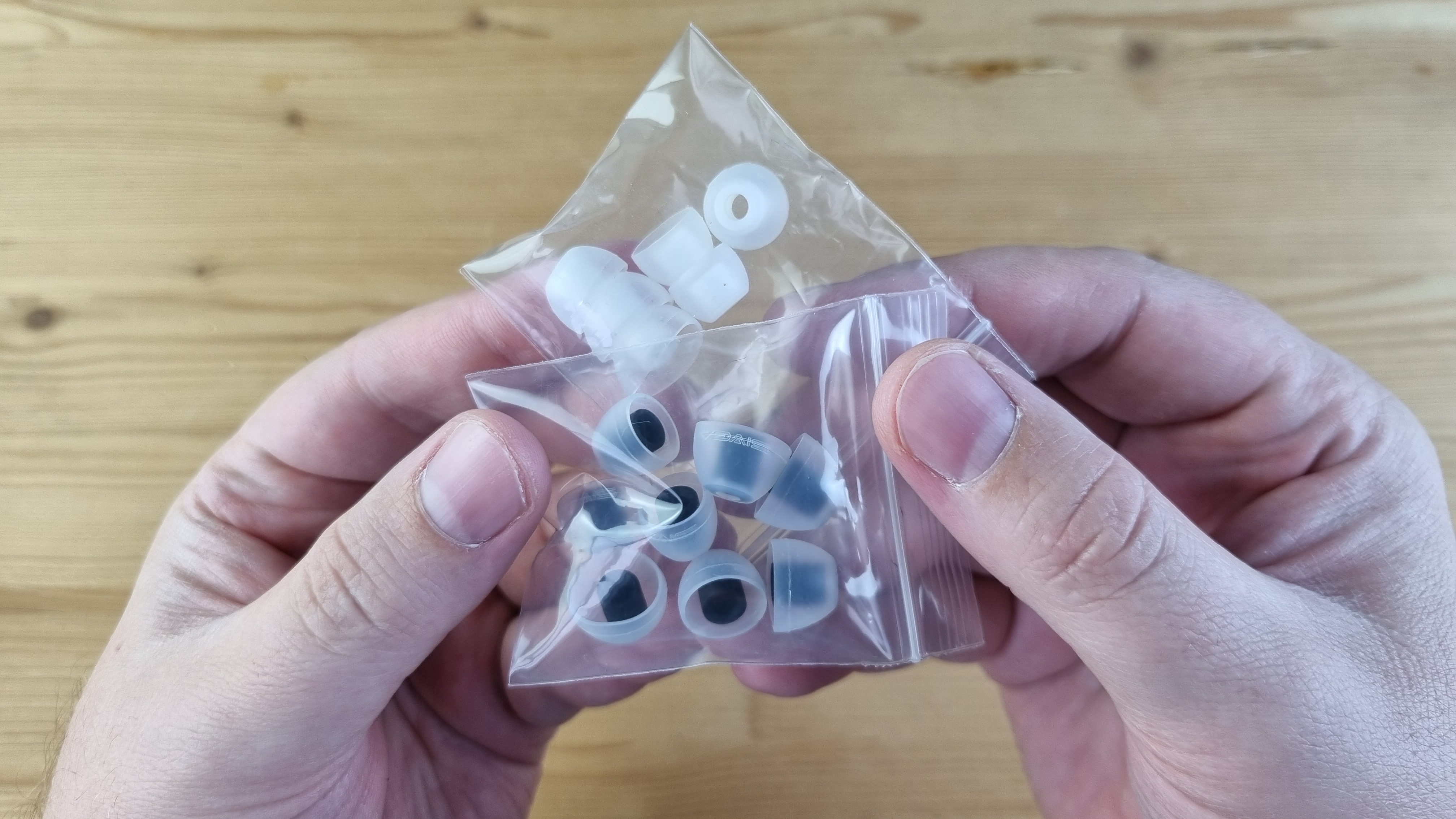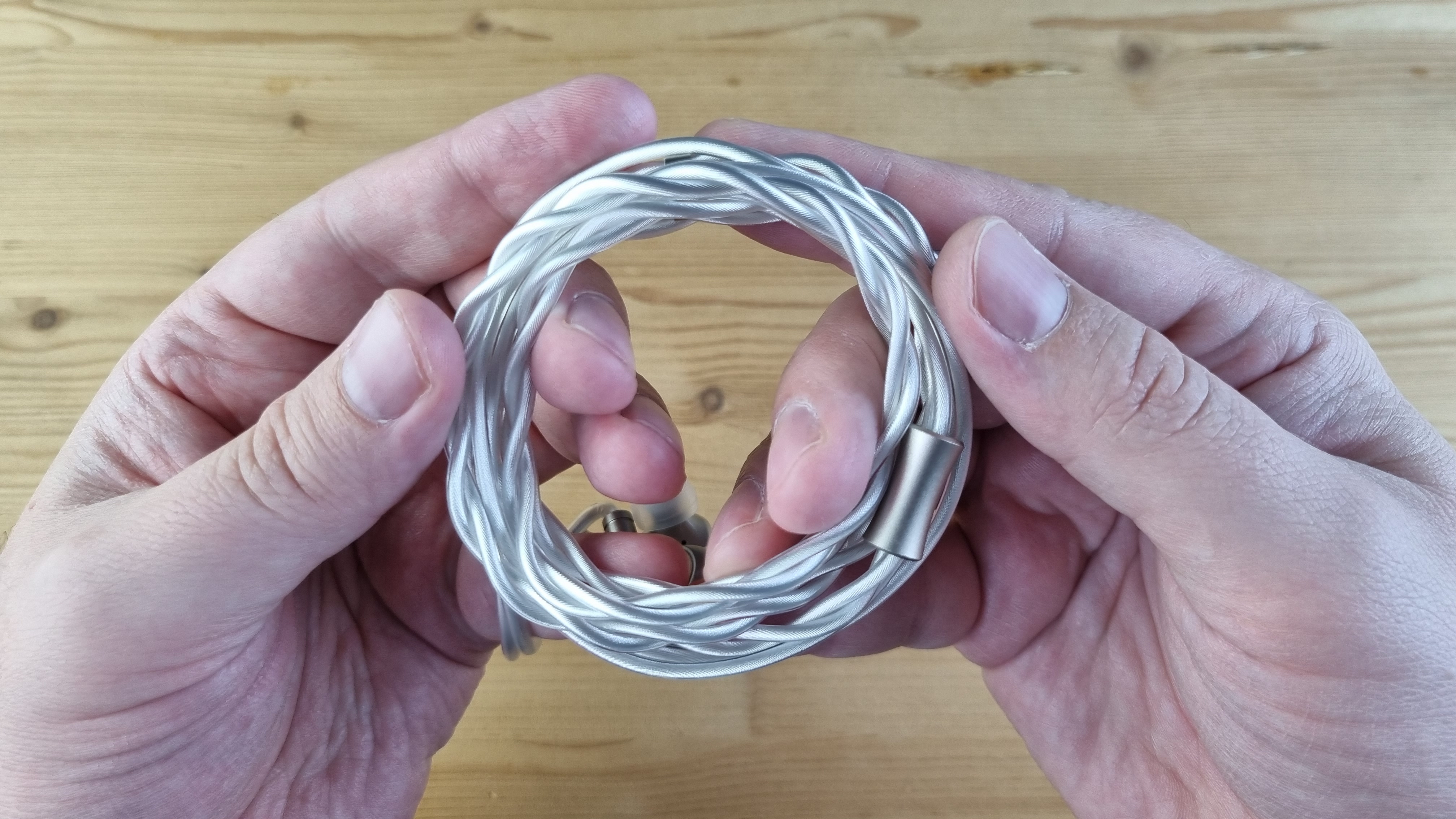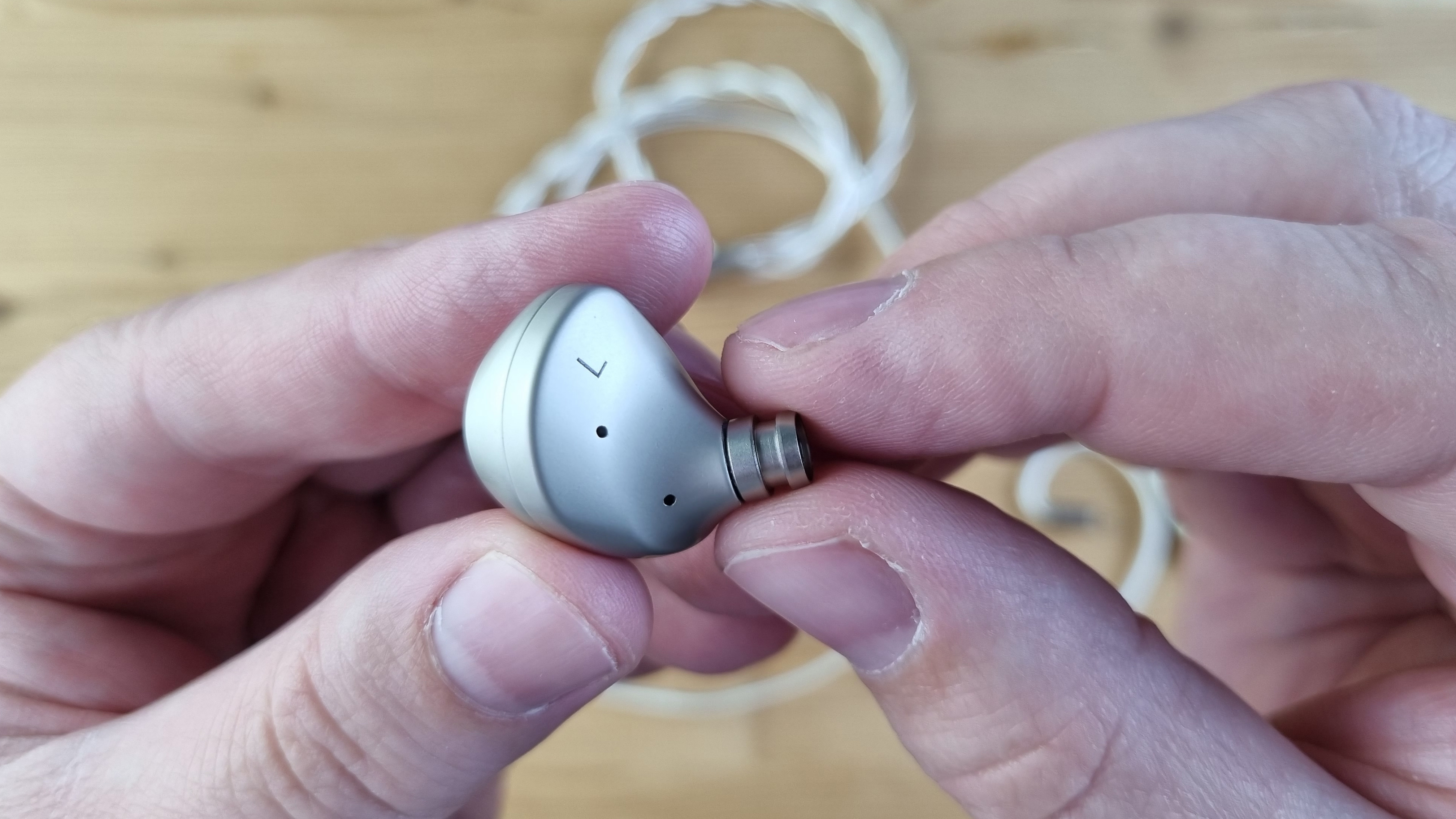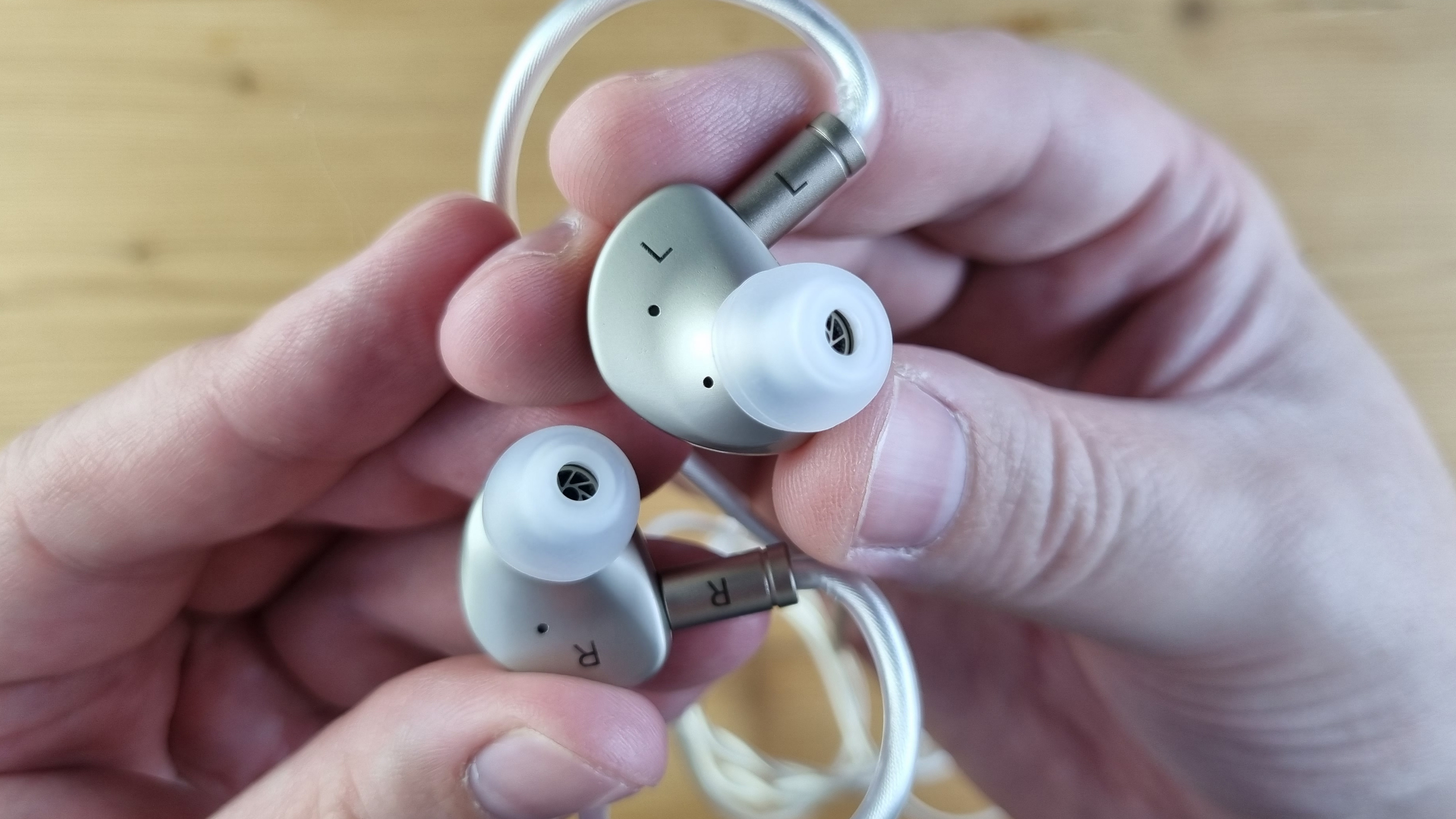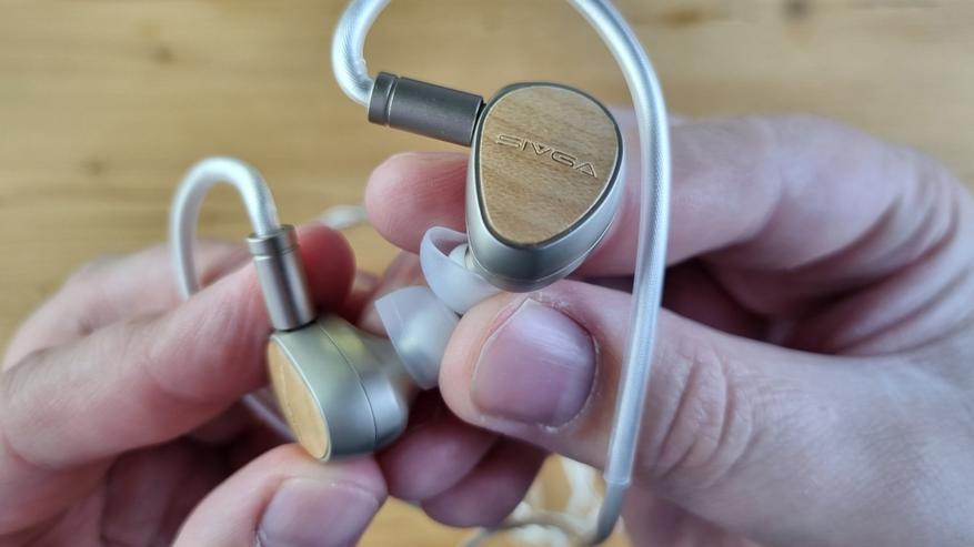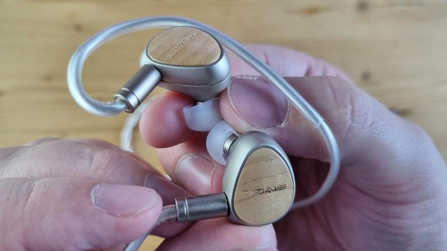 Сами чашечки сделаны из металла, с двумя отверстиями для компенсации, стандартным по размеру звуководом и дорого выглядящей внешней частью из натурального дерева.