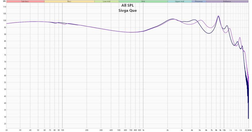 На слух Sivga Que в меру яркие, с небольшим уклоном в агрессию и выделение всей верхней части диапазона. Бас здесь довольно таки ощутим, он жирный, глубокий, с чуть смазанными текстурами, но просто превосходным переходом на середину. Он не наваливается, не заглушает и не давит её свой энергетикой, отчего последним хватает и воздуха, и объема, и все нюансы как на ладони, включая очень достойную артикуляцию.