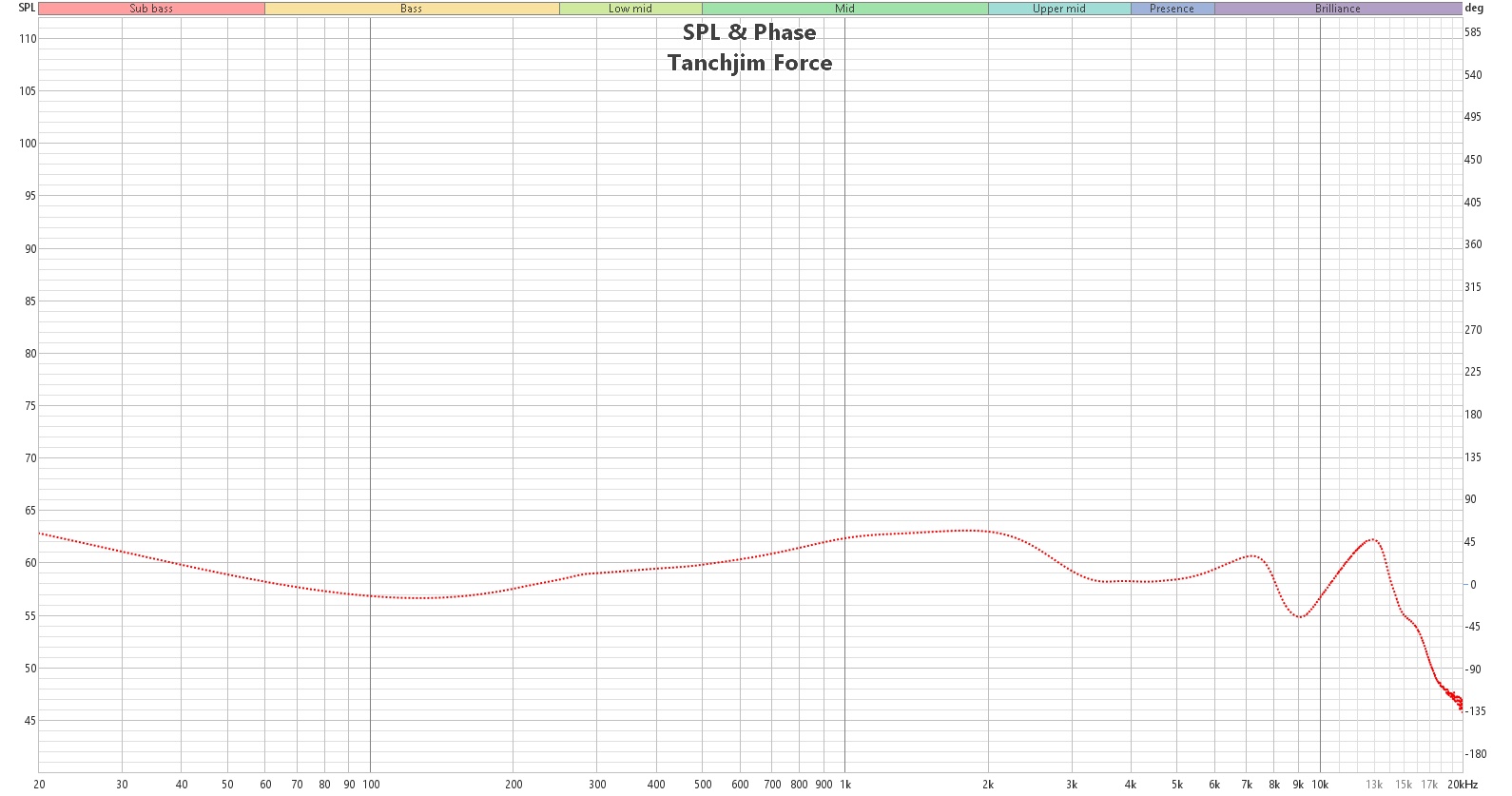 На слух подача Tanchjim Force мне показалась достаточно подробной, цельной и очень гармоничной. Подъем на верхней середине каким-то чудом компенсируется их легкой притемнённостью, в результате чего выходит нечто среднее, без лишней яркости, агрессии и сибилятивных призвуков, но с чуть подсвеченной перкуссией и общей выразительностью.