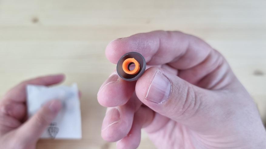 В комплекте был черный плотный бокс, пара пенок и набор силиконовых амбушюр, немного напоминающих KB-07.